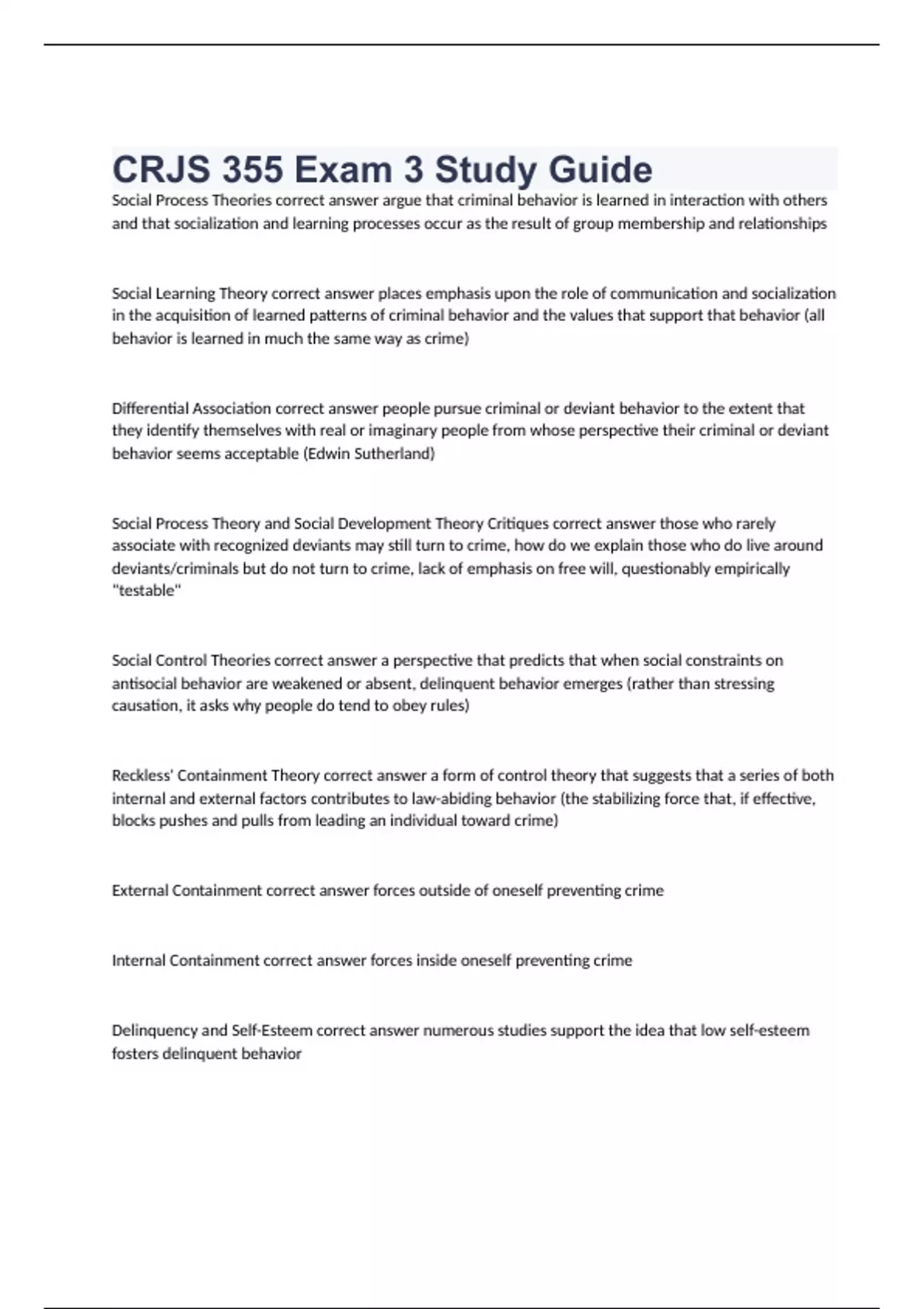 CRJS 355 Exam 3 Study Guide 2023 questions and correct answers