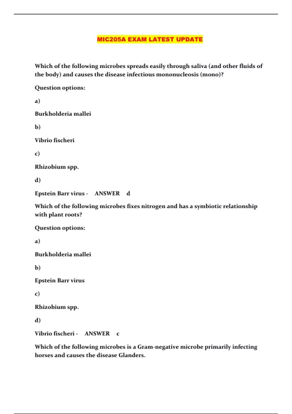 MIC205A EXAM LATEST UPDATE...