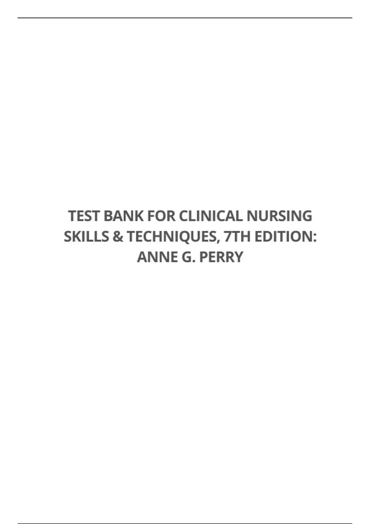 TEST BANK FOR CLINICAL NURSING SKILLS & TECHNIQUES, 7TH EDITION: ANNE G. PERRY