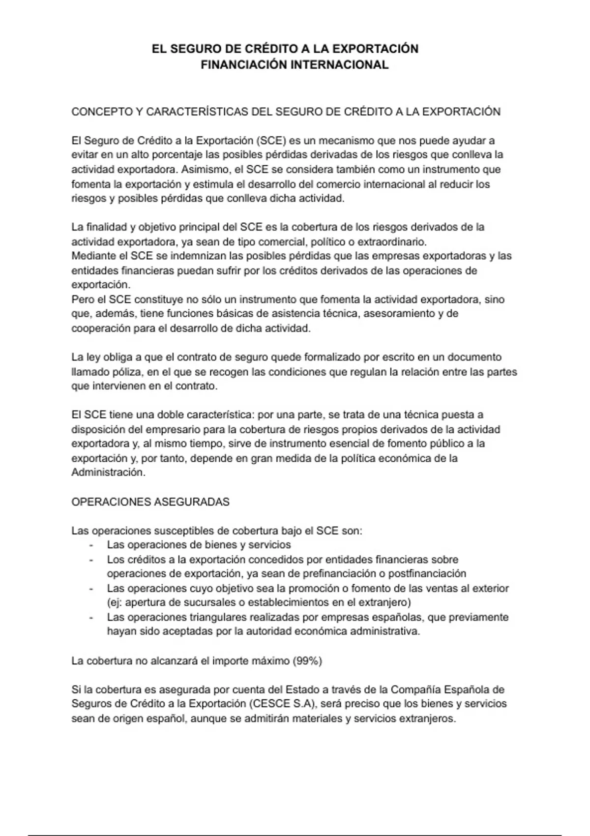 CONCEPTO Y CARACTERÍSTICAS DEL SEGURO DE CRÉDITO A LA EXPORTACIÓN