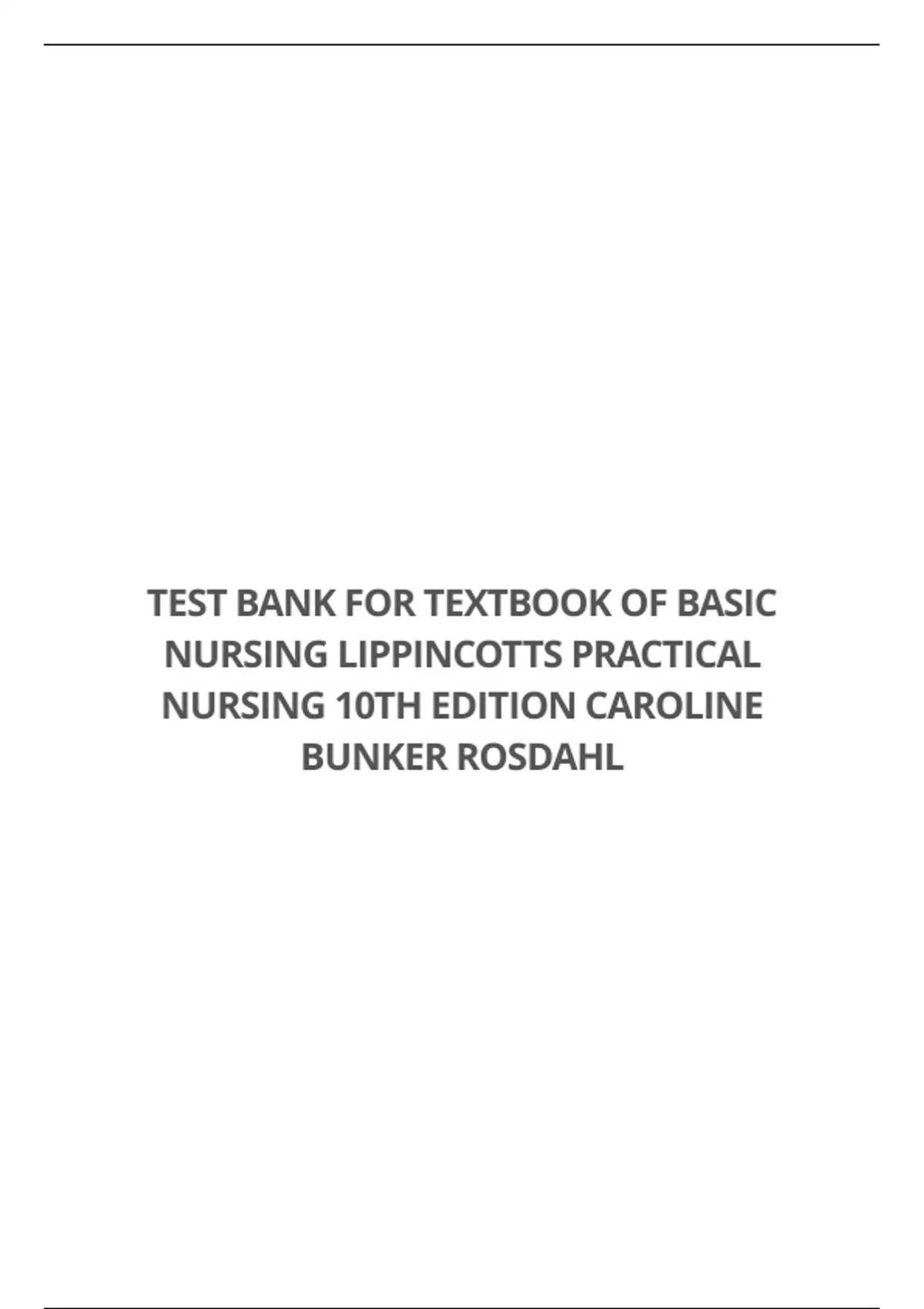 TEST BANK FOR TEXTBOOK OF BASIC NURSING LIPPINCOTTS PRACTICAL NURSING 10TH EDITION CAROLINE BUNKER ROSDAHL