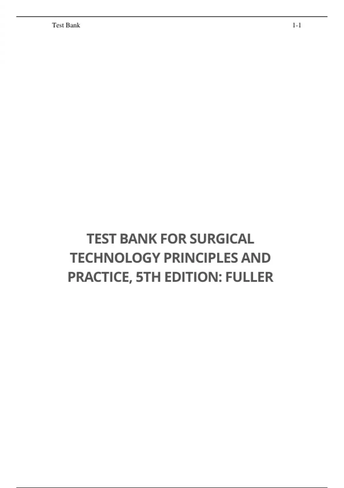 TEST BANK FOR SURGICAL TECHNOLOGY PRINCIPLES AND PRACTICE, 5TH EDITION: FULLER