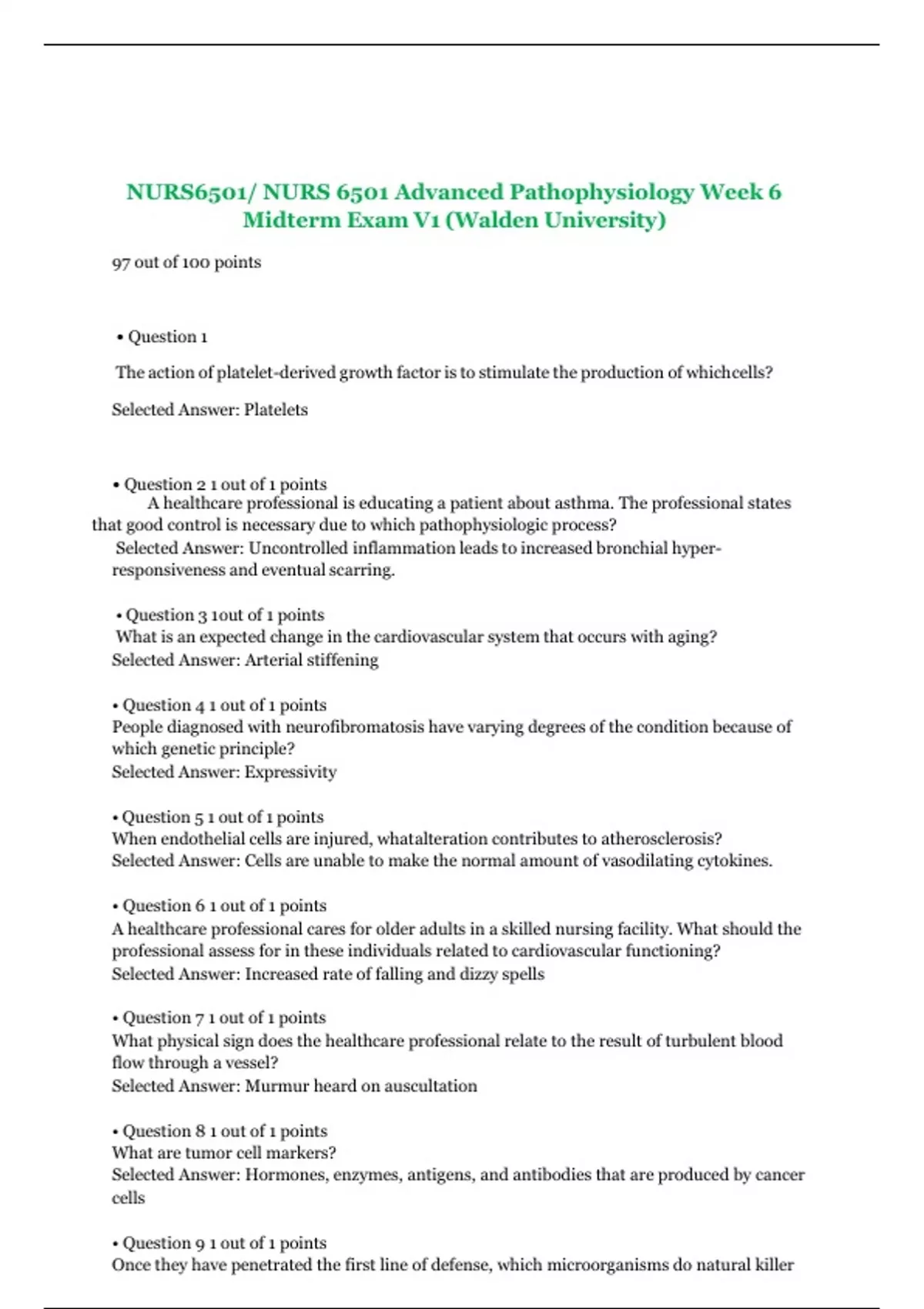 NURS6501/ NURS 6501 Advanced Pathophysiology Week 6 Midterm Exam V1 (Walden University)