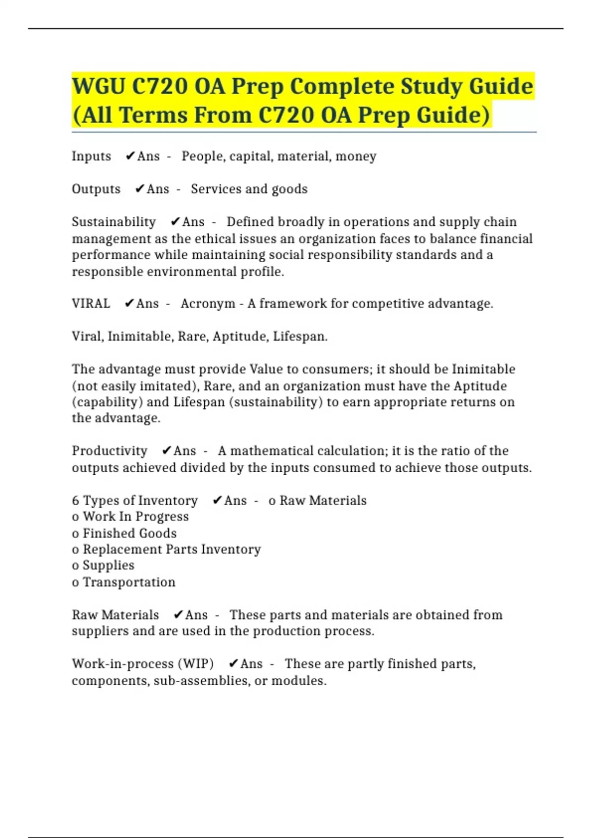 WGU C720 OA Prep Complete Study Guide (All Terms From C720 OA Prep Guide)