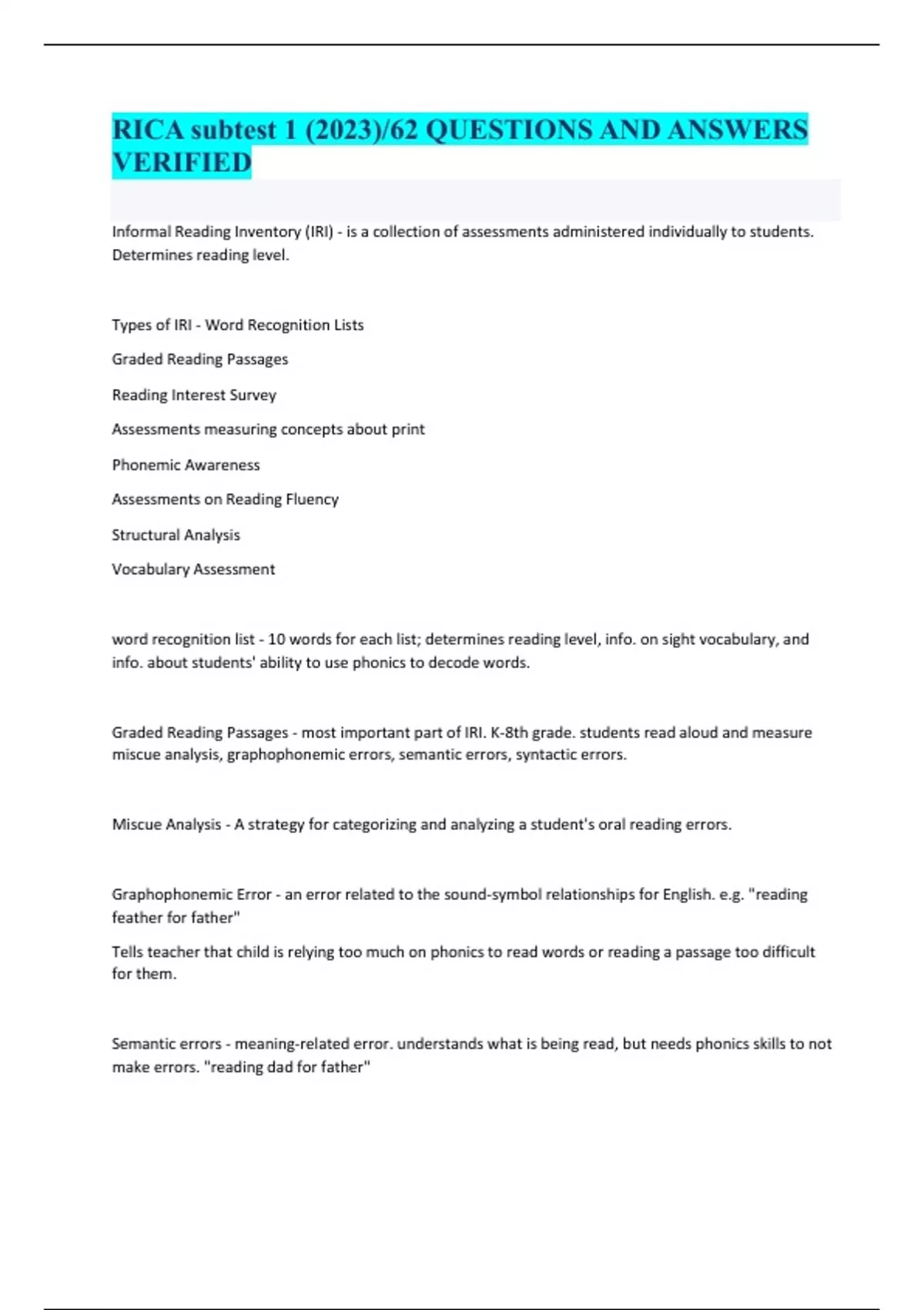 RICA subtest 1 (2023)/62 QUESTIONS AND ANSWERS VERIFIED