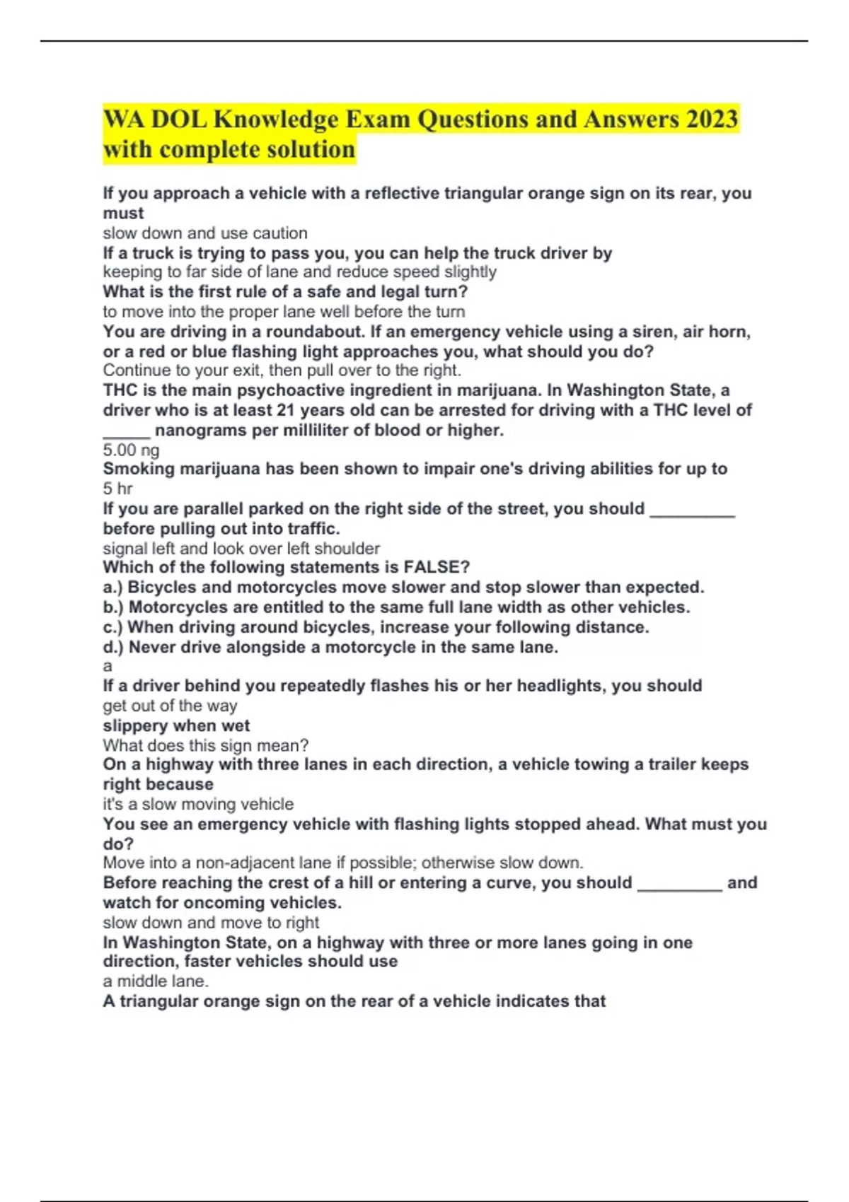 If you approach a vehicle with a reflective triangular orange sign on its rear, you