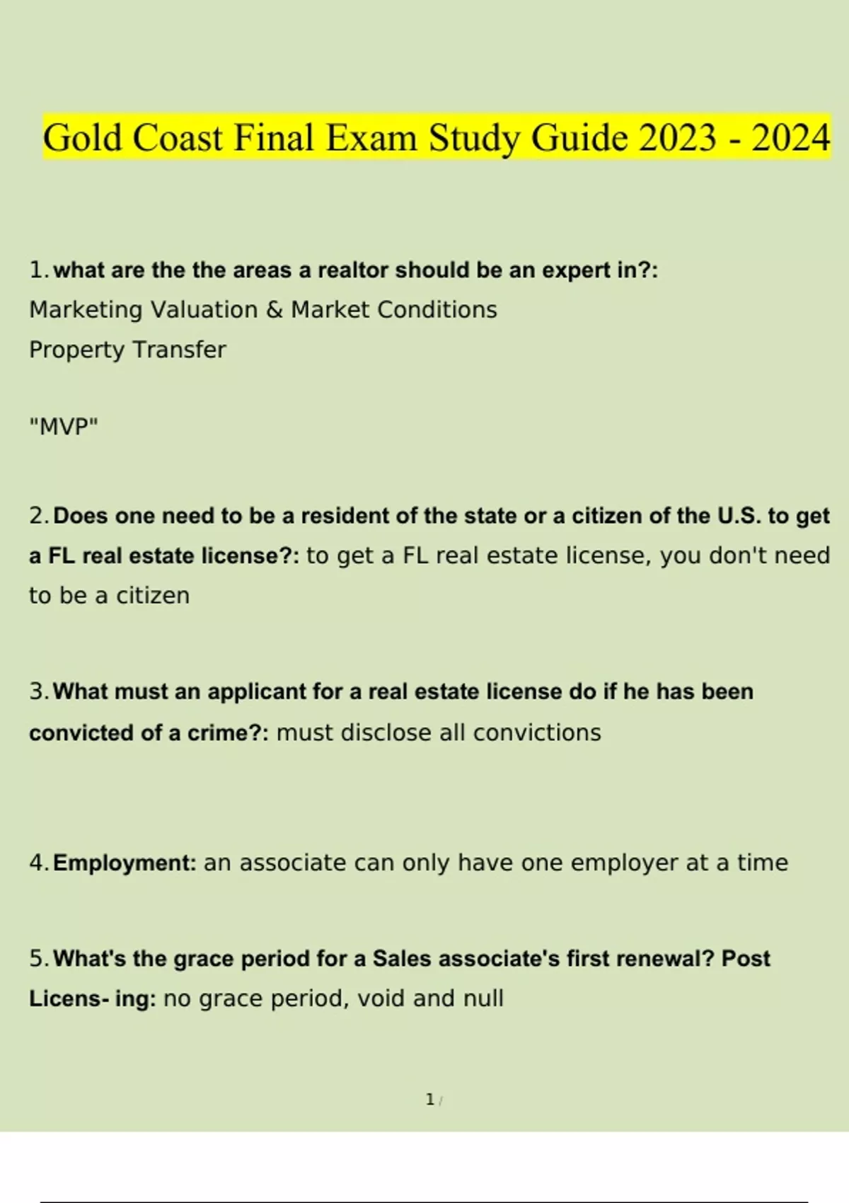Gold Coast Final Exam Study Guide Questions and Answers (Verified Answers by Expert) Gold Coast Final Exam Study Guide Questions and Answers (Verified Answers by Expert)