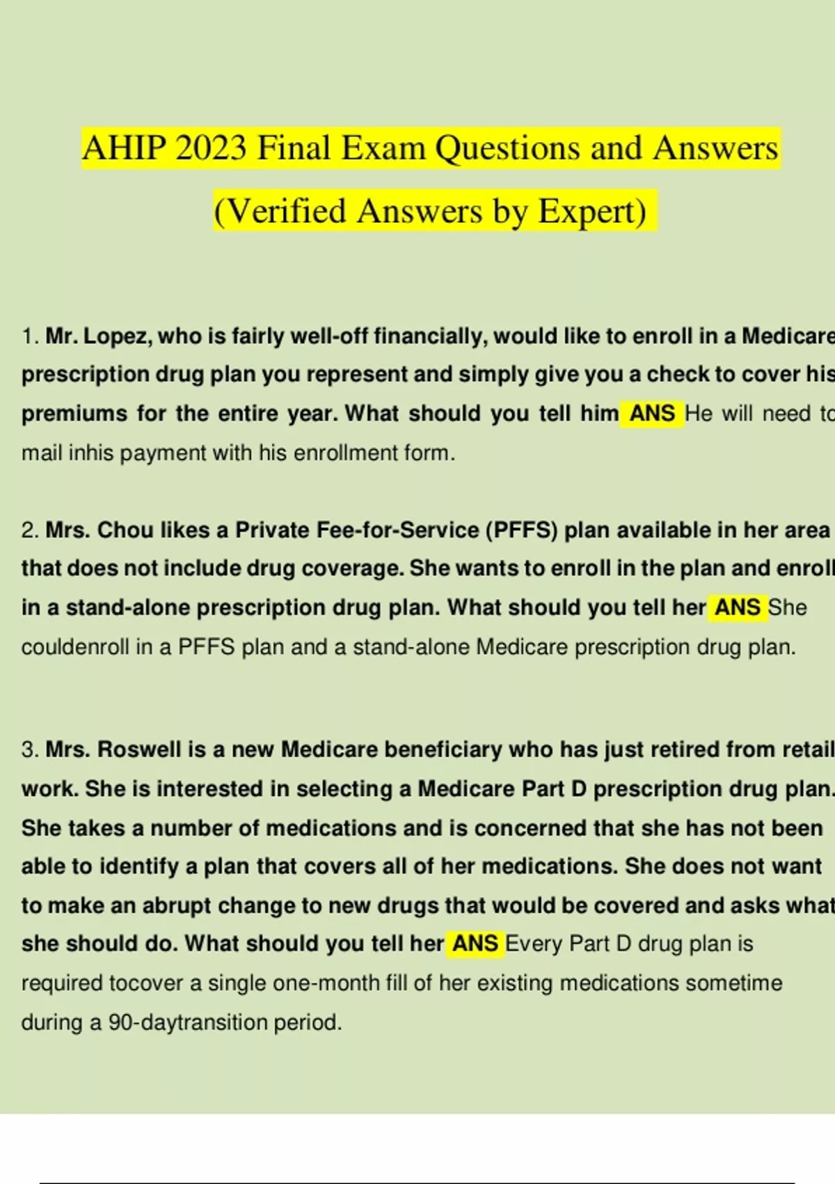 AHIP Final Exam Questions and Answers (Verified Answers by Expert) AHIP Final Exam Questions and Answers (Verified Answers by Expert)