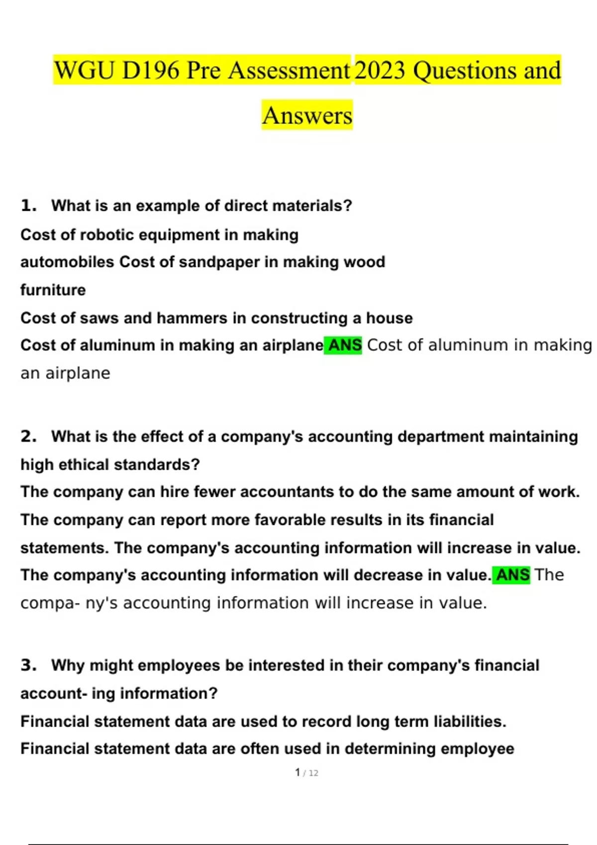 wgu d196 pre assessment questions and answers