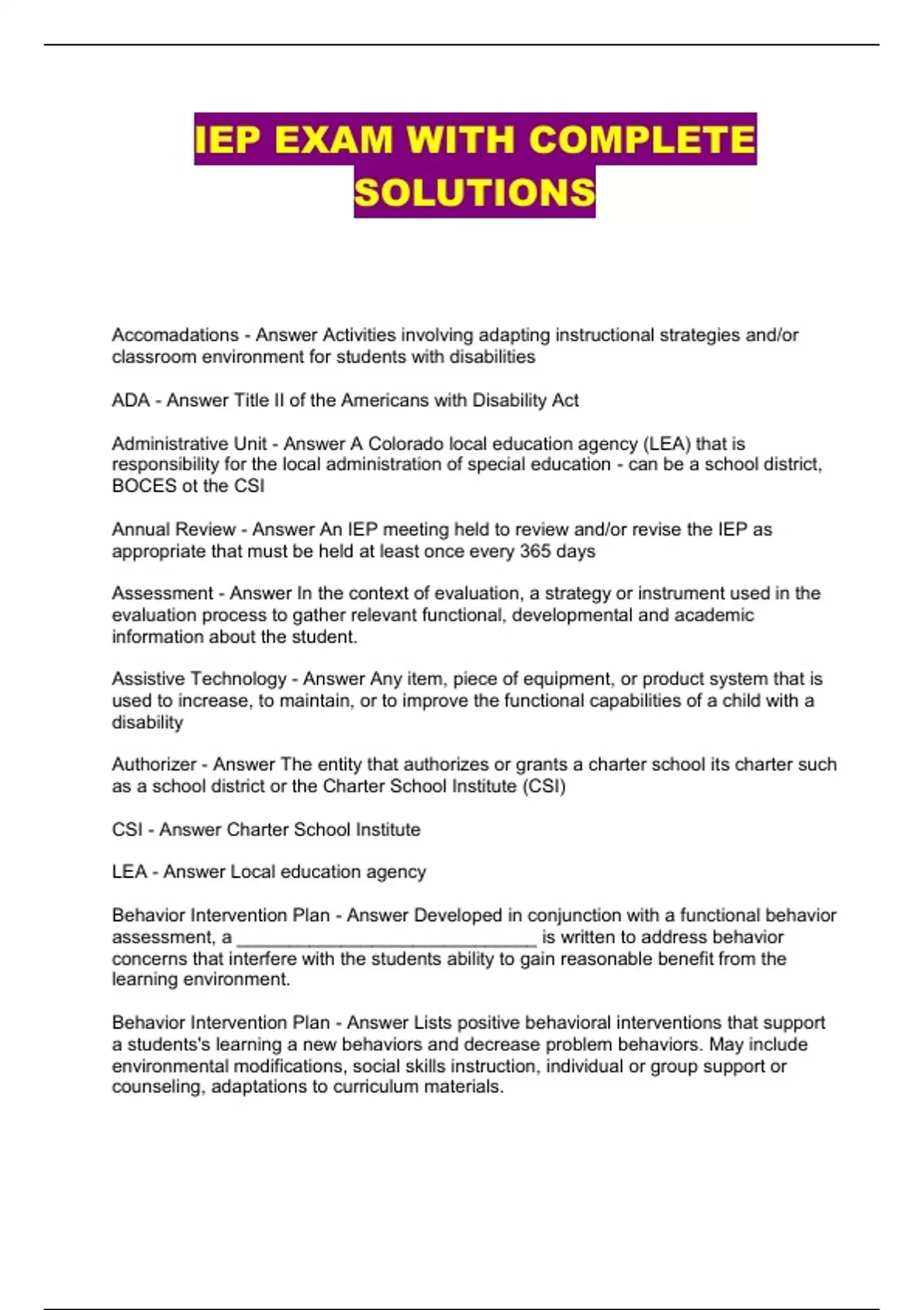 IEP EXAM WITH COMPLETE SOLUTIONS...