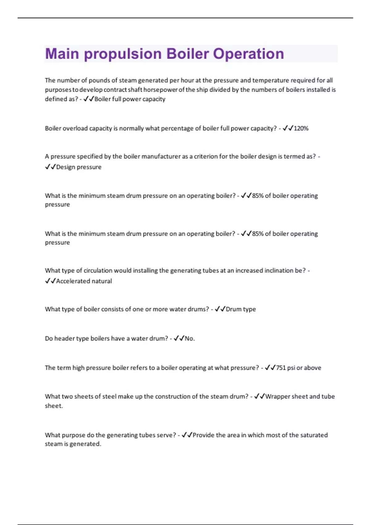Main propulsion Boiler Operation | 125 Questions and Answers(A+ Solution guide)