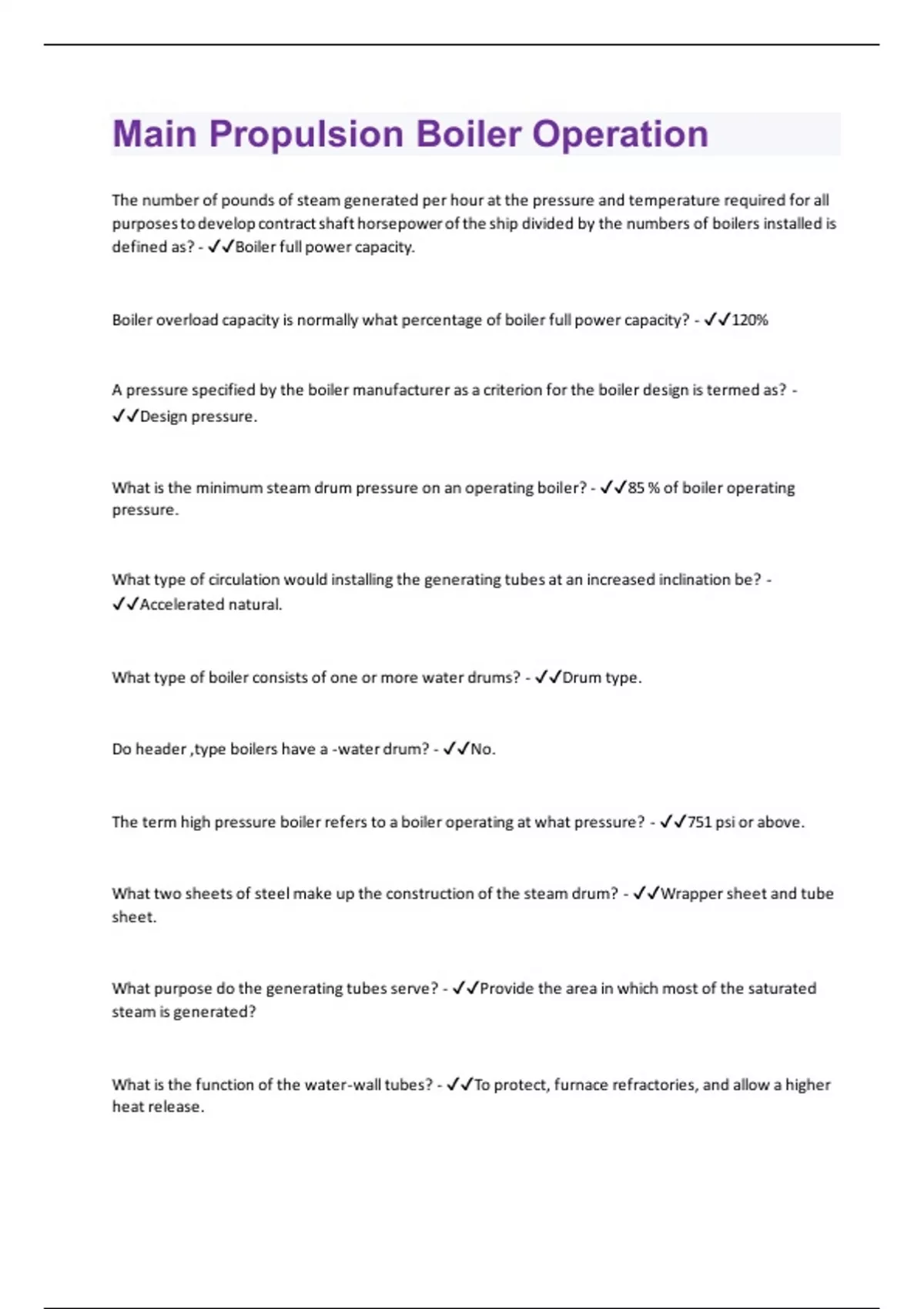 Main Propulsion Boiler Operation | Questions with 100 % correct answers | Verified