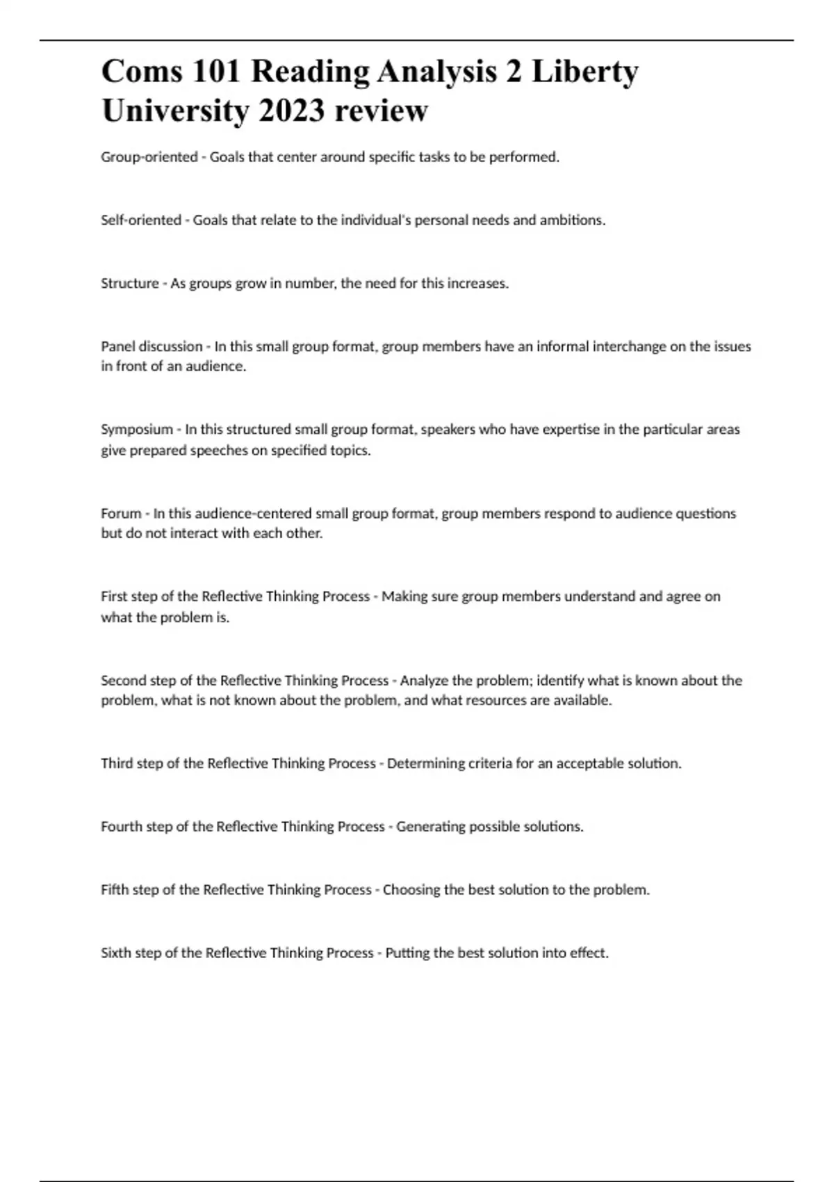 Coms 101 Reading Analysis 2 Liberty University 2023 review