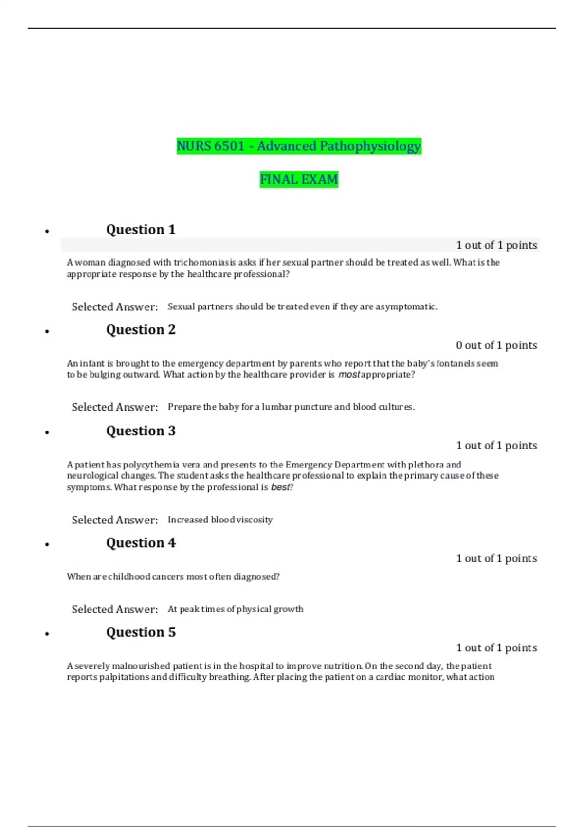 nurs 6501 advanced pathophysiology final exam