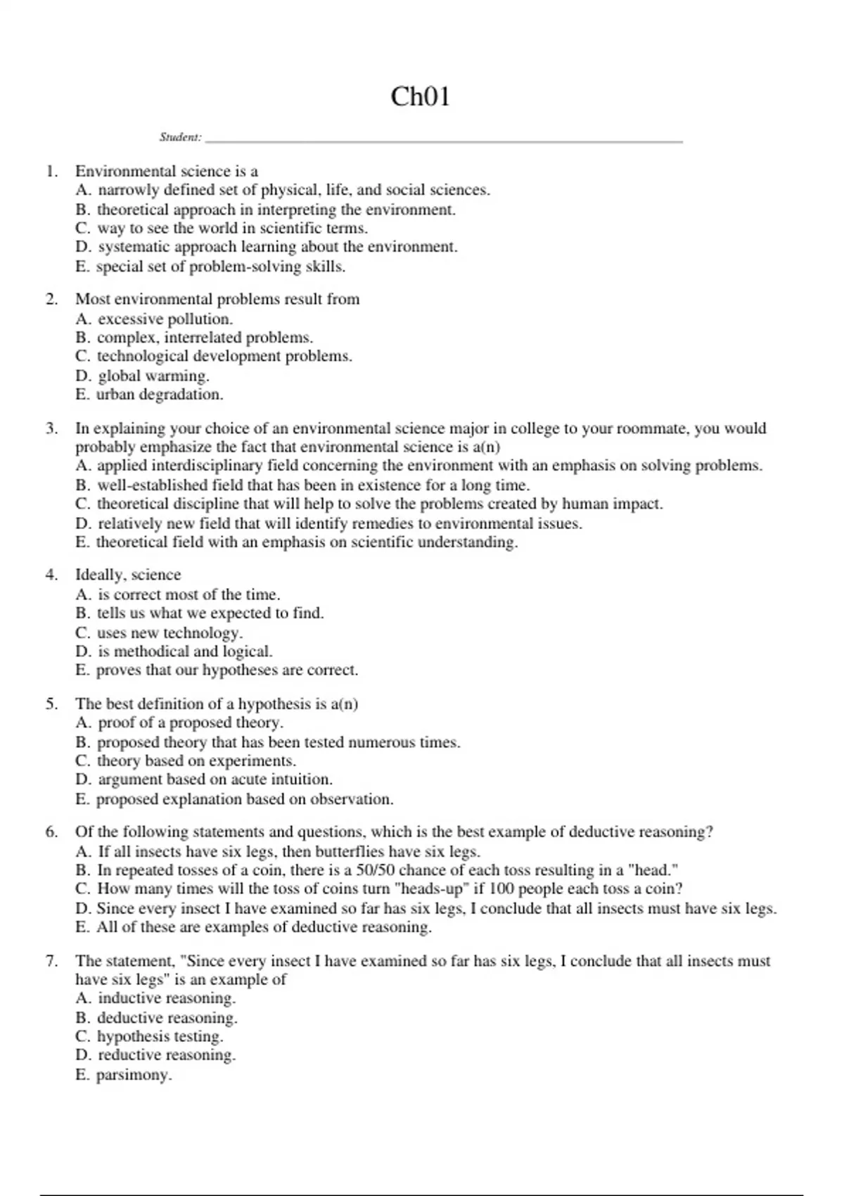 Study Efficiently with the Updated 2023 [Principles of Environmental Science Inquiry and Applications, Cunningham,7e] Test Bank
