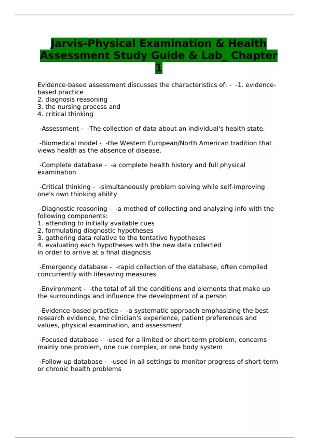 Jarvis-Physical Examination & Health Assessment Study Guide & Lab_ Chapter 1