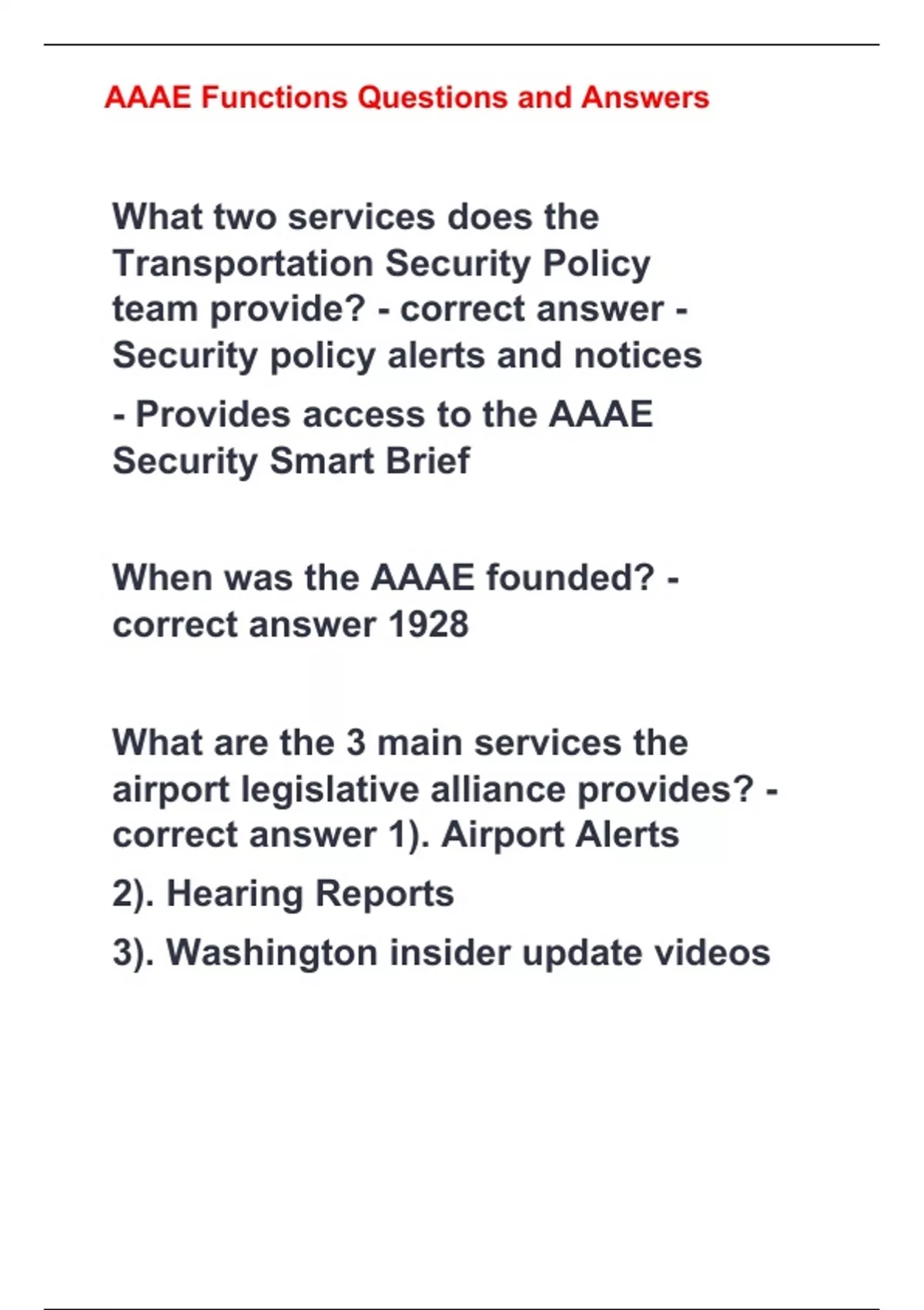 aaae functions questions and answers