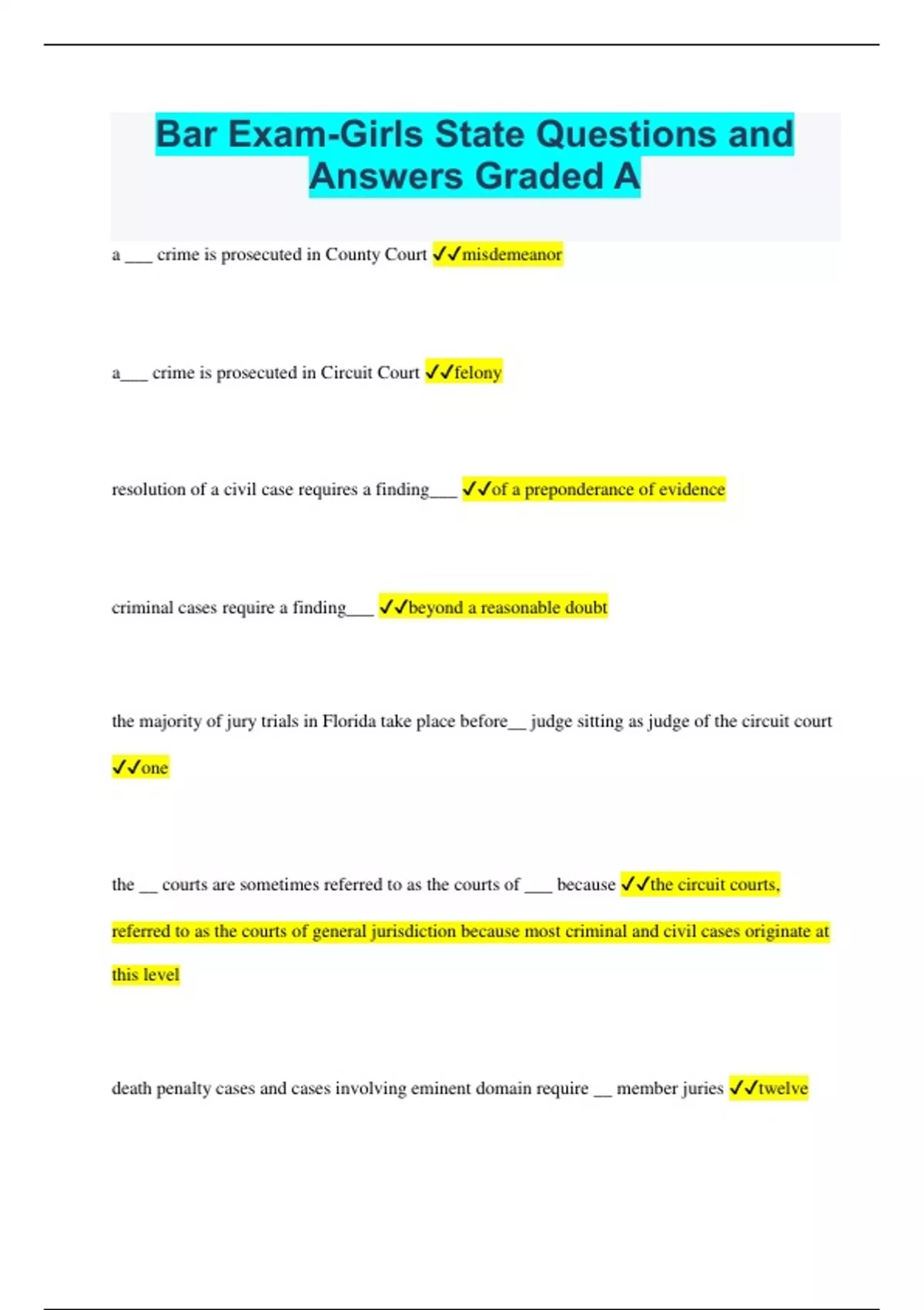 Bar Exam-Girls State Questions and Answers Graded A