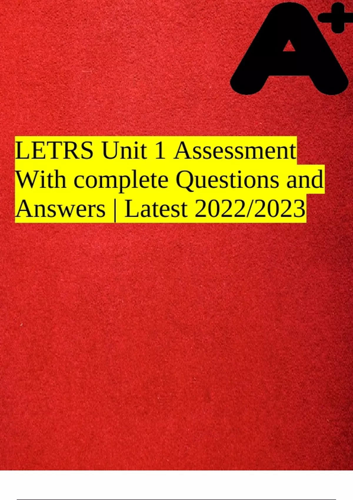 LETRS Unit 1 Assessment With complete Questions and Answers | Latest 2022/2023