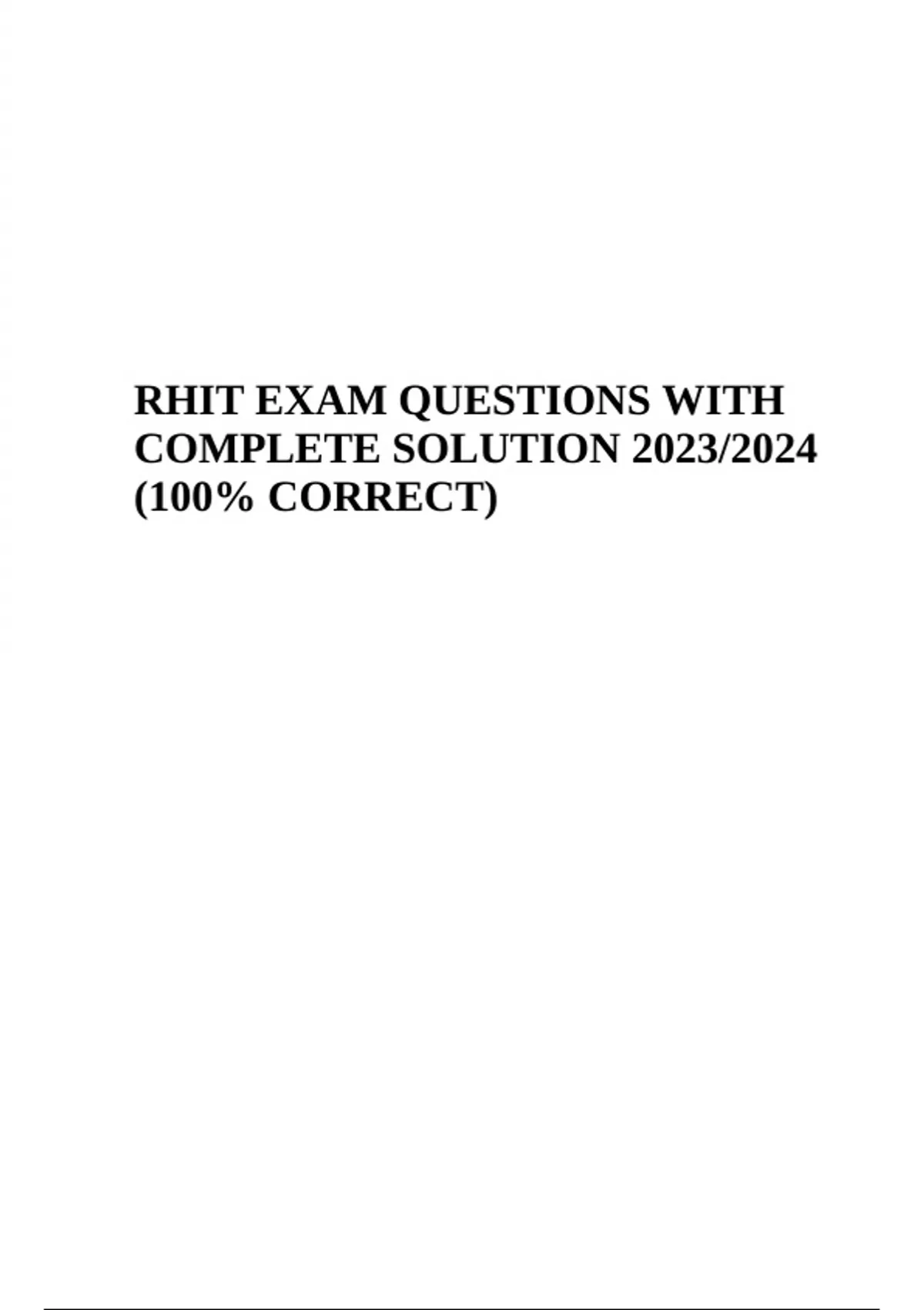 RHIT EXAM QUESTIONS WITH COMPLETE SOLUTION - LATEST 2023/2024 (100% VERIFIED)