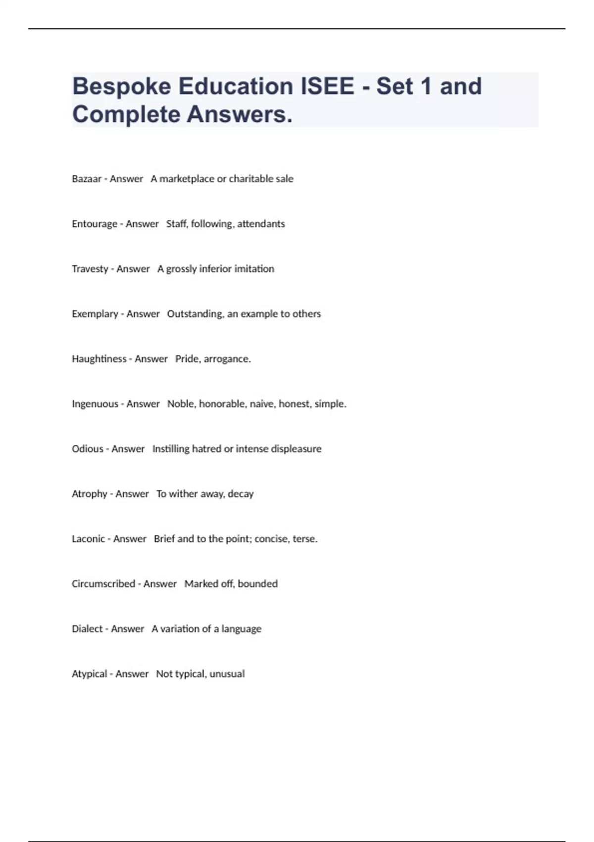 Bespoke Education ISEE - Set 1 and Complete Answers.
