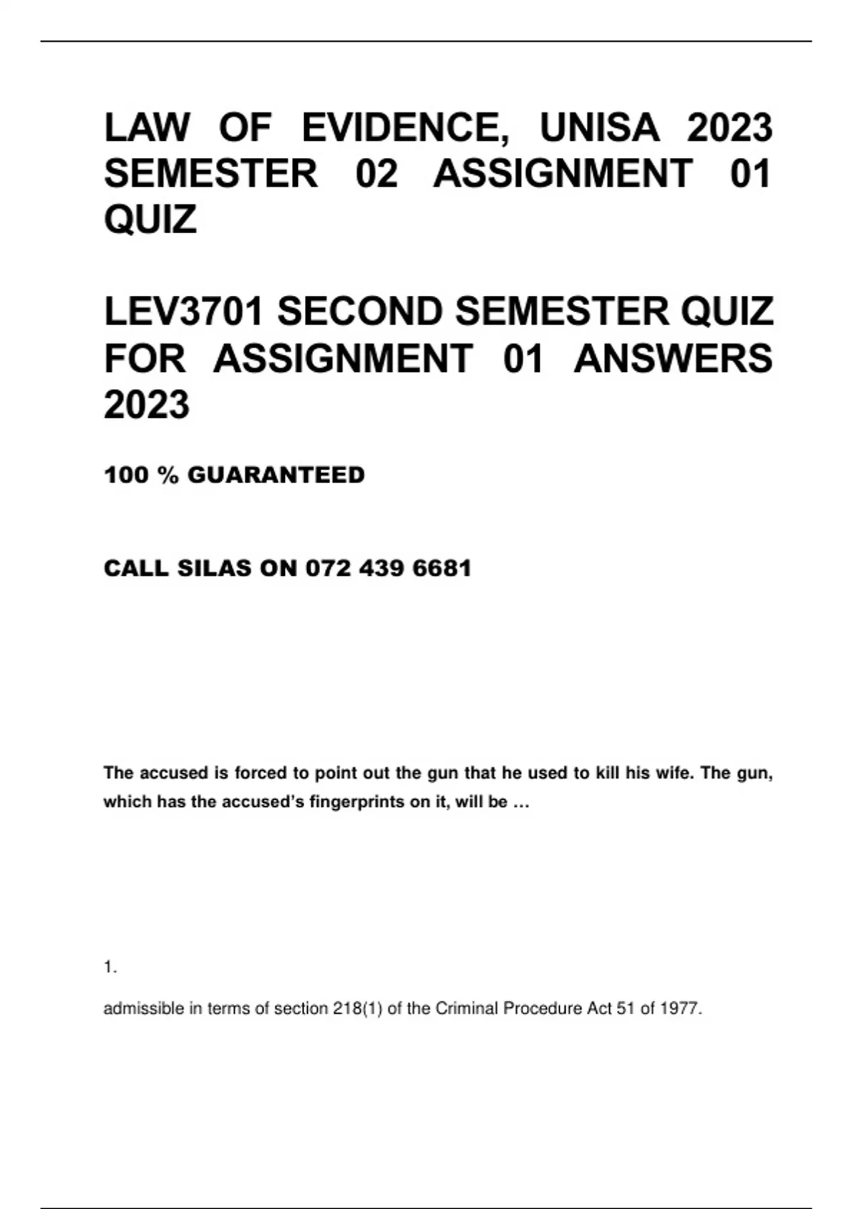 LAW OF EVIDENCE, UNISA 2023