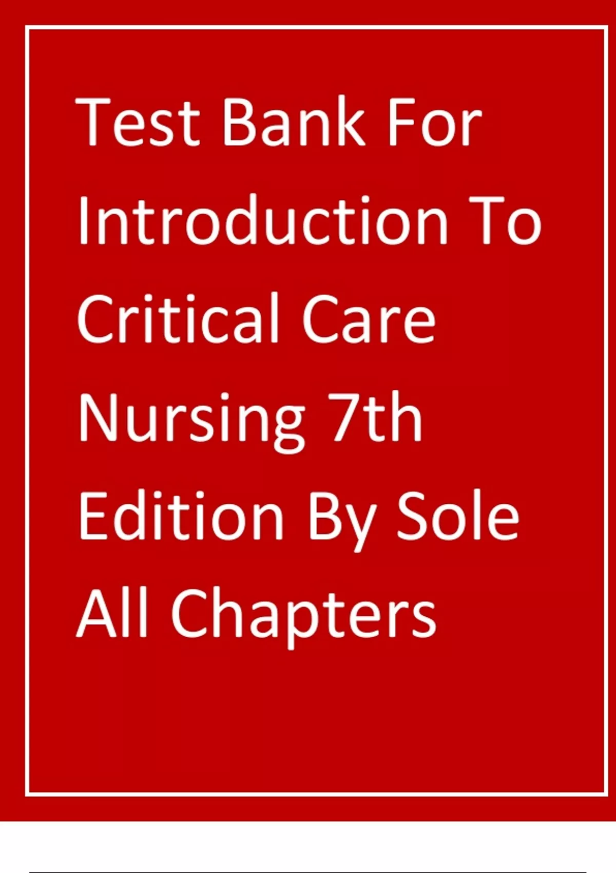 Test Bank For Introduction To Critical Care Nursing 7th Edition By Sole All Chapters