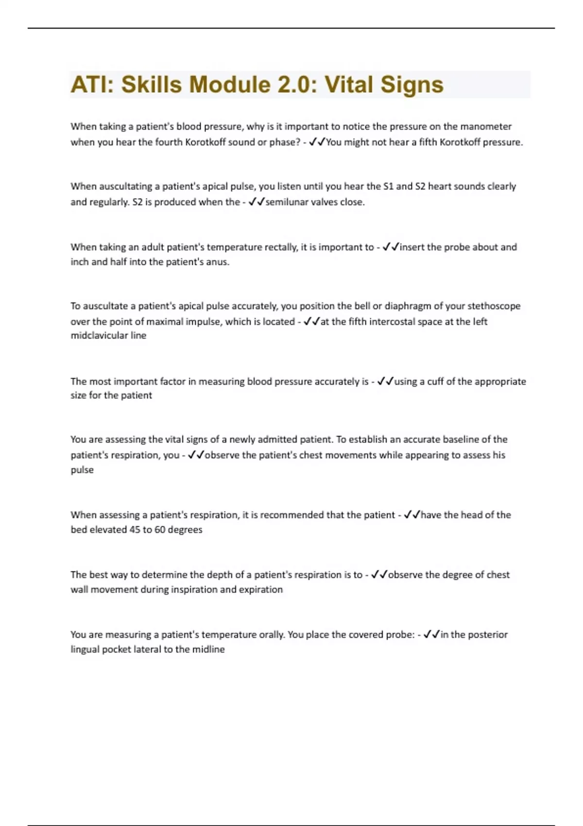 ATI: Skills Module 2.0: Vital Signs| Questions and Answers(A+ Solution guide)