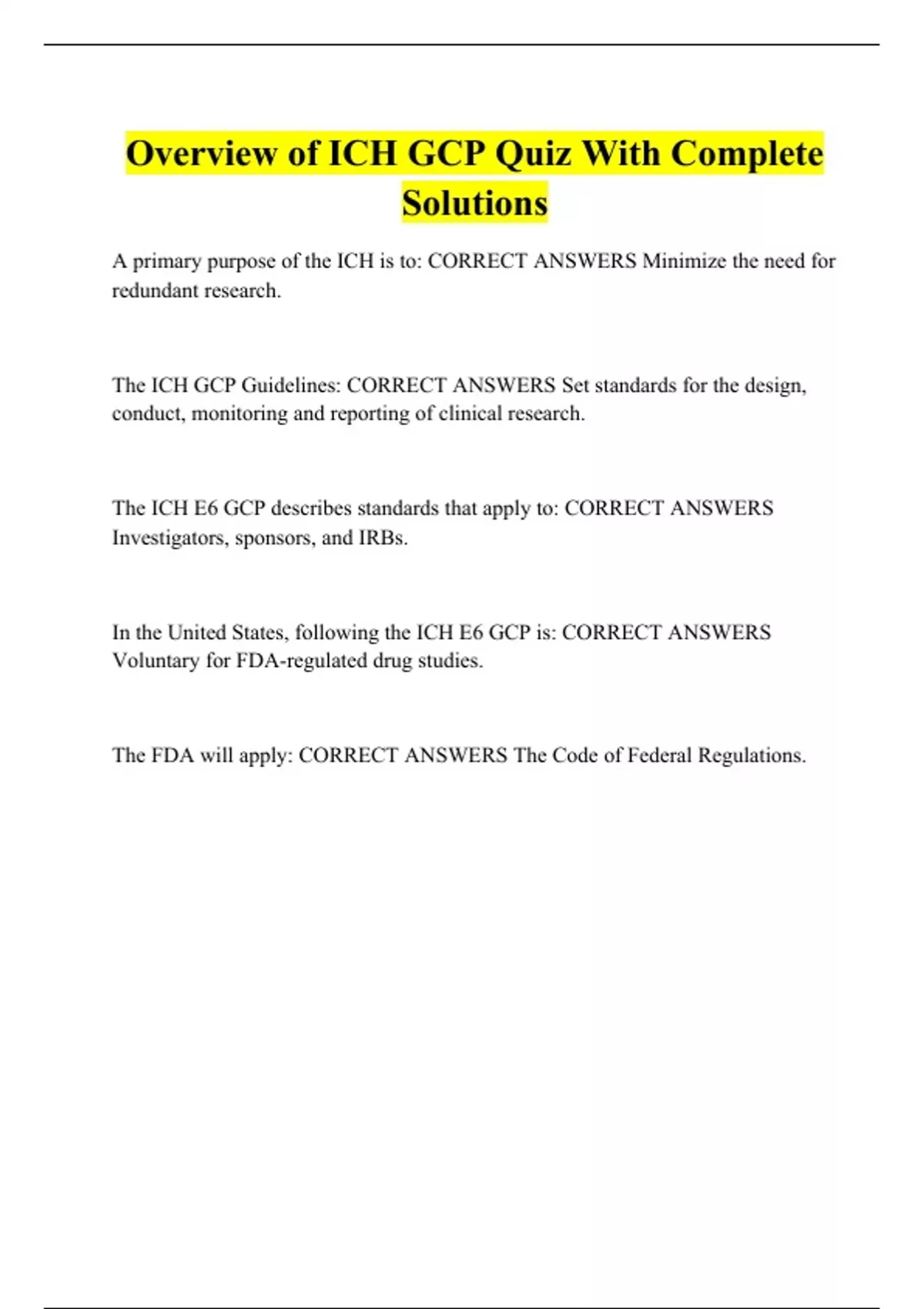 Overview of ICH GCP Quiz With Complete Solutions