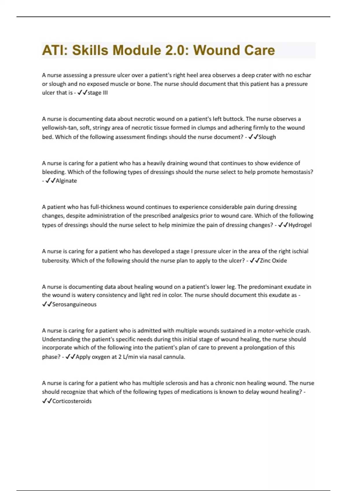 ATI: Skills Module 2.0: Wound Care Questions and Answers Latest