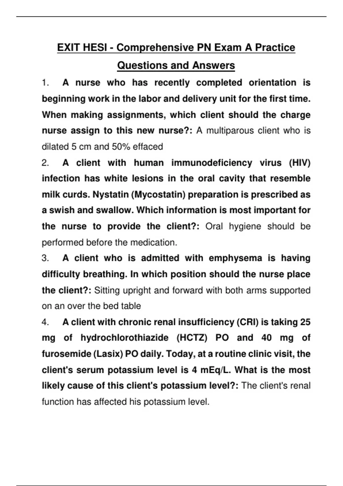EXIT HESI - Comprehensive PN Exam A Practice Questions and Answers