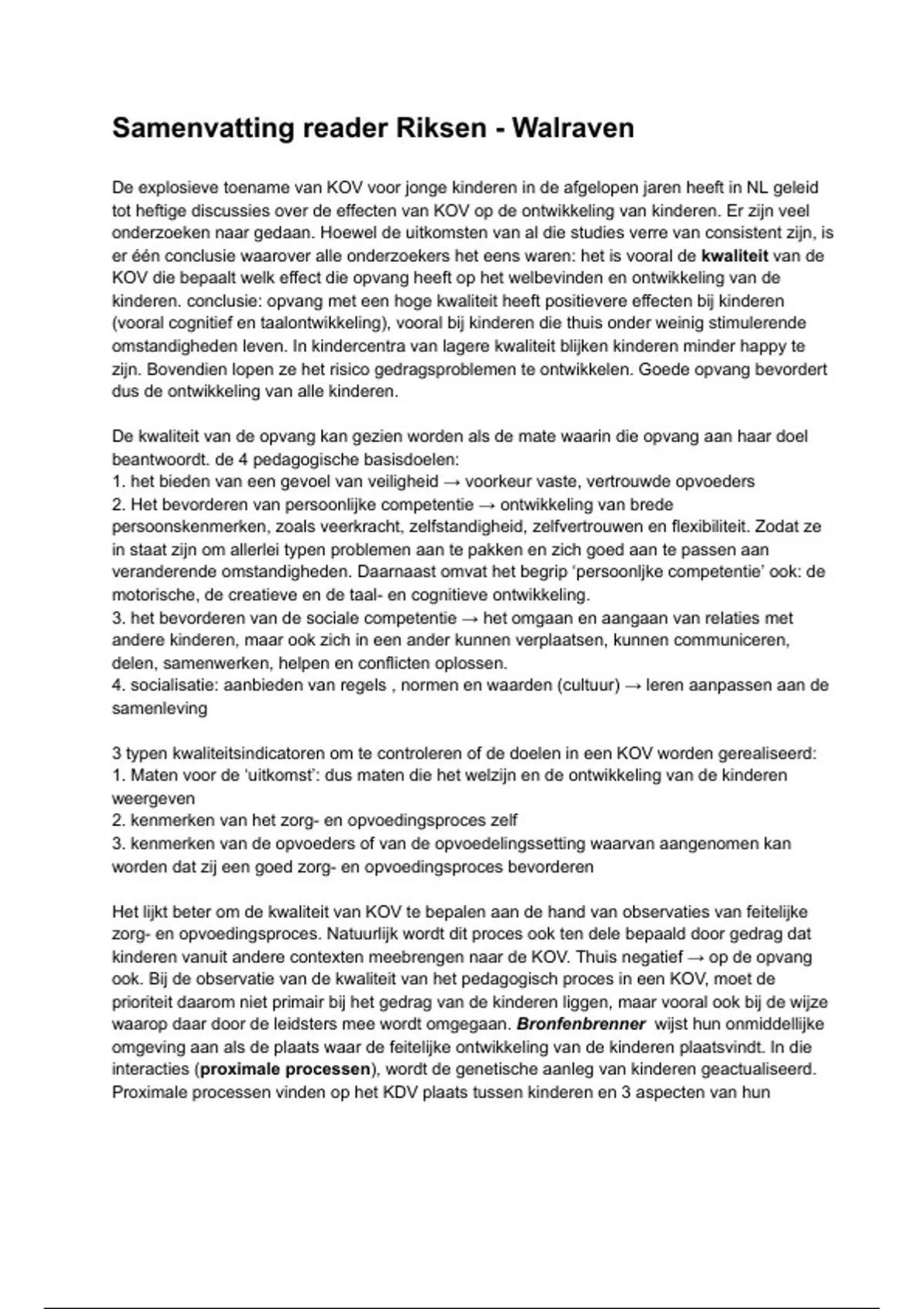 kinderen. conclusie: opvang met een hoge kwaliteit heeft positievere effecten bij kinderen