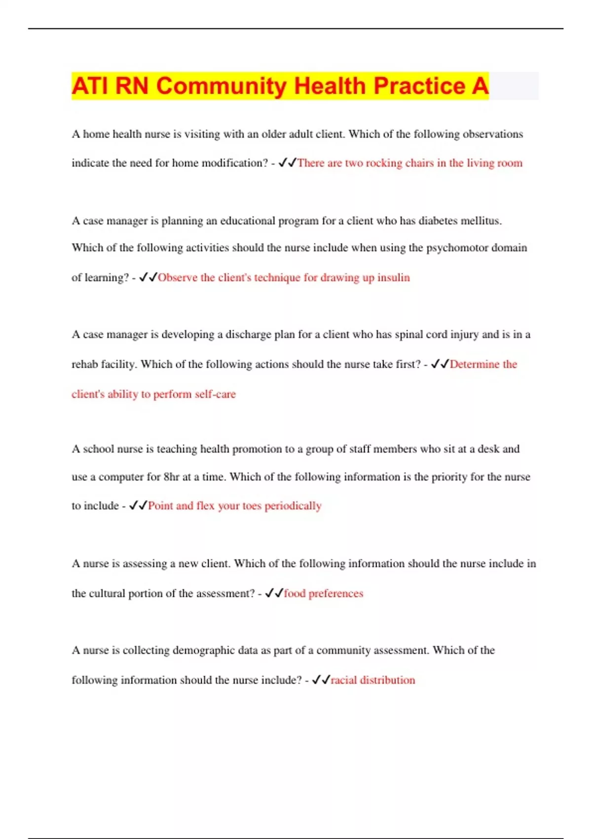 ATI RN Community Health Practice A | 2023 | 50 Questions with 100% Correct Answers | Updated & Verified