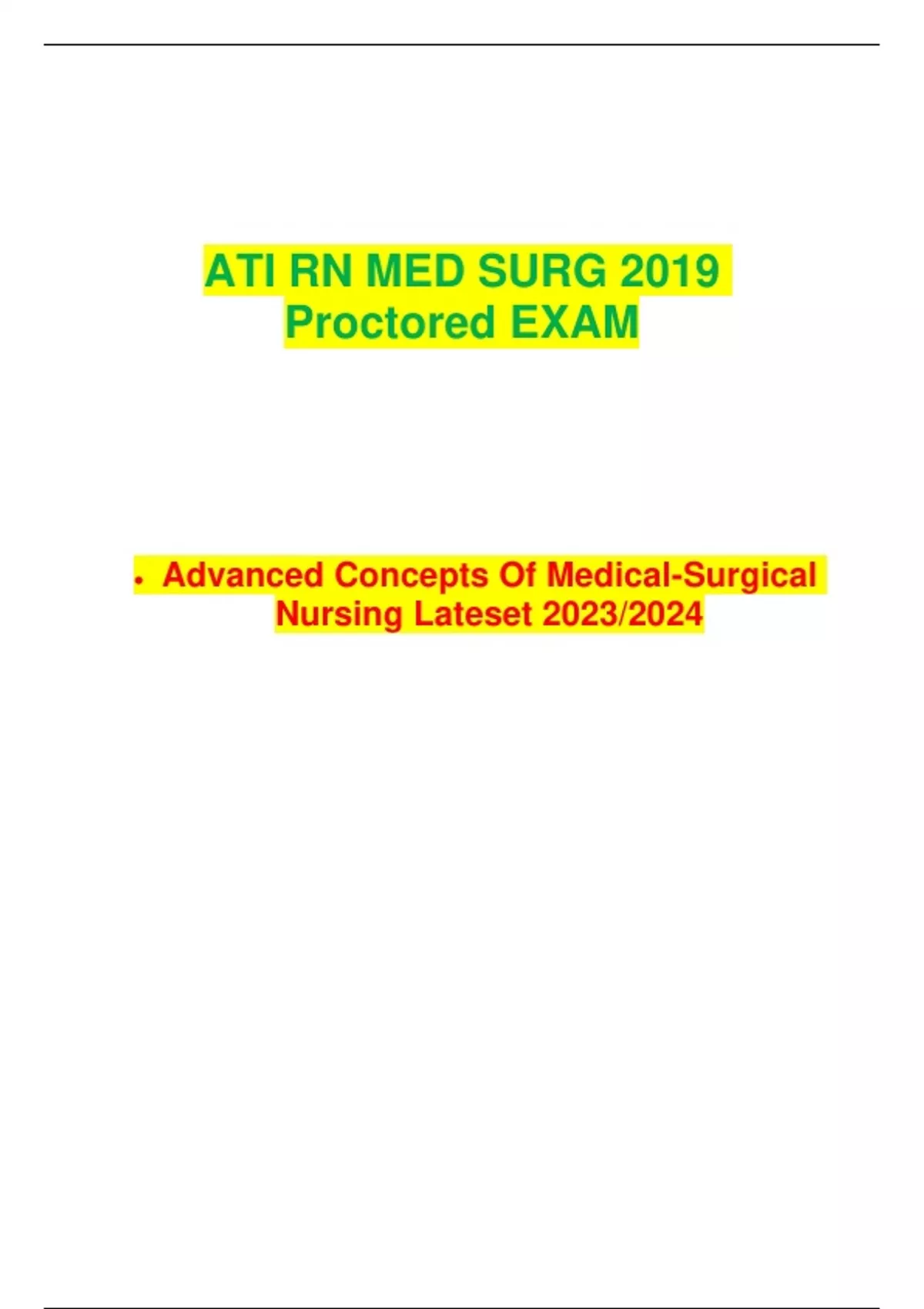 ATI RN MED SURG 2019 Proctored EXAM • Advanced Concepts Of Medical-Surgical Nursing Lateset 2023/2024