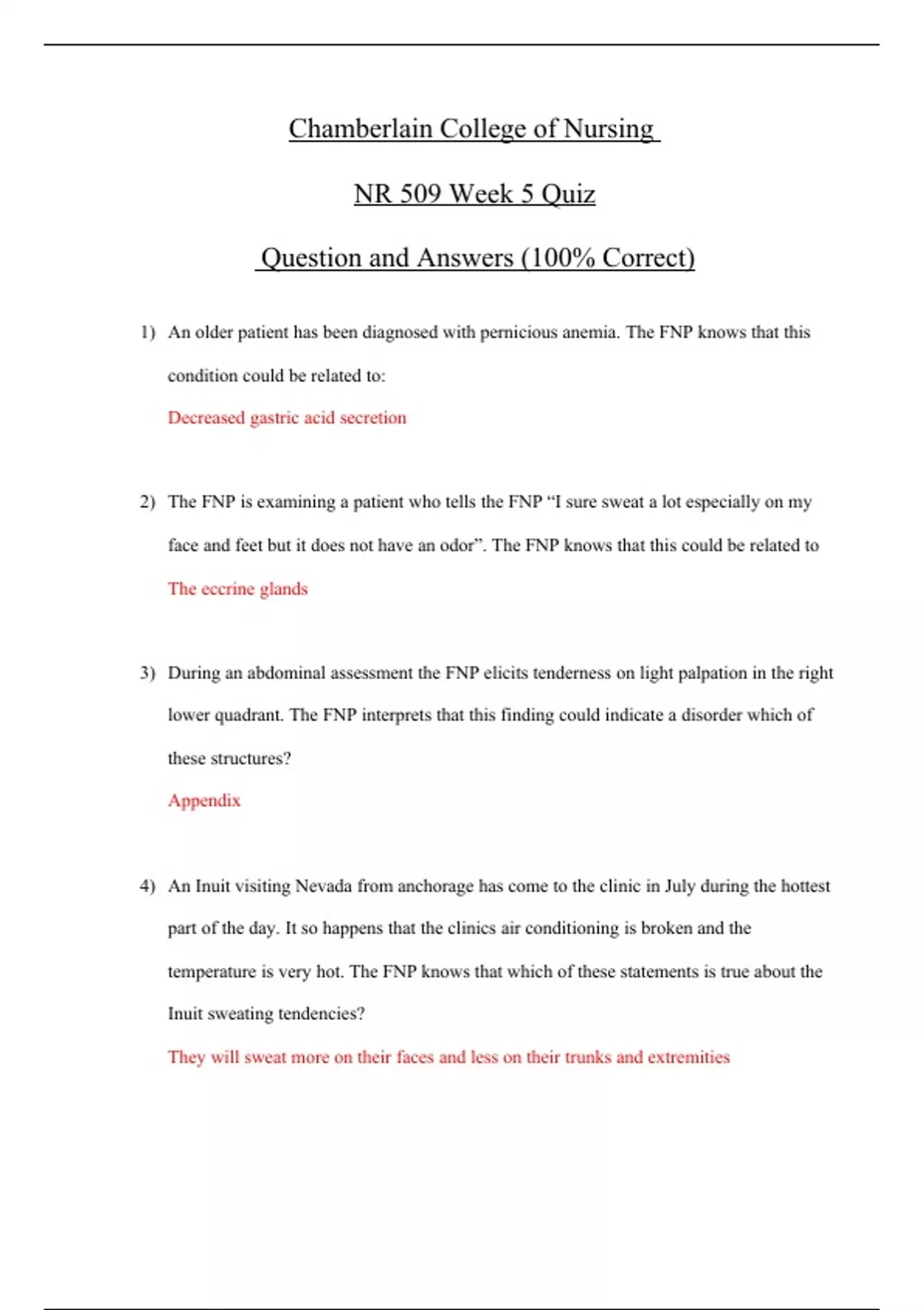 NR 509 Week 5 Quiz Questions and Answers (100% Correct)