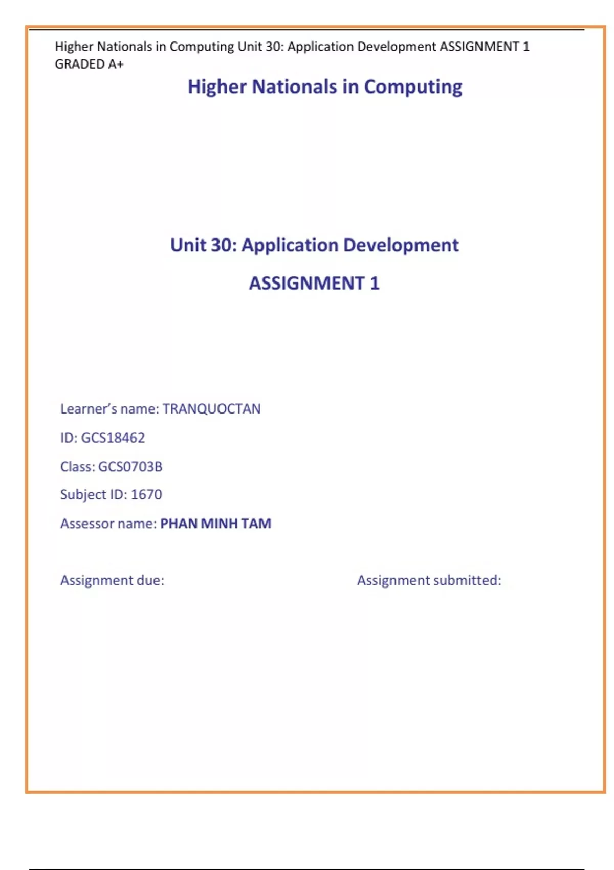 Higher Nationals in Computing Unit 30 Application Development ASSIGNMENT 1 GRADED A+