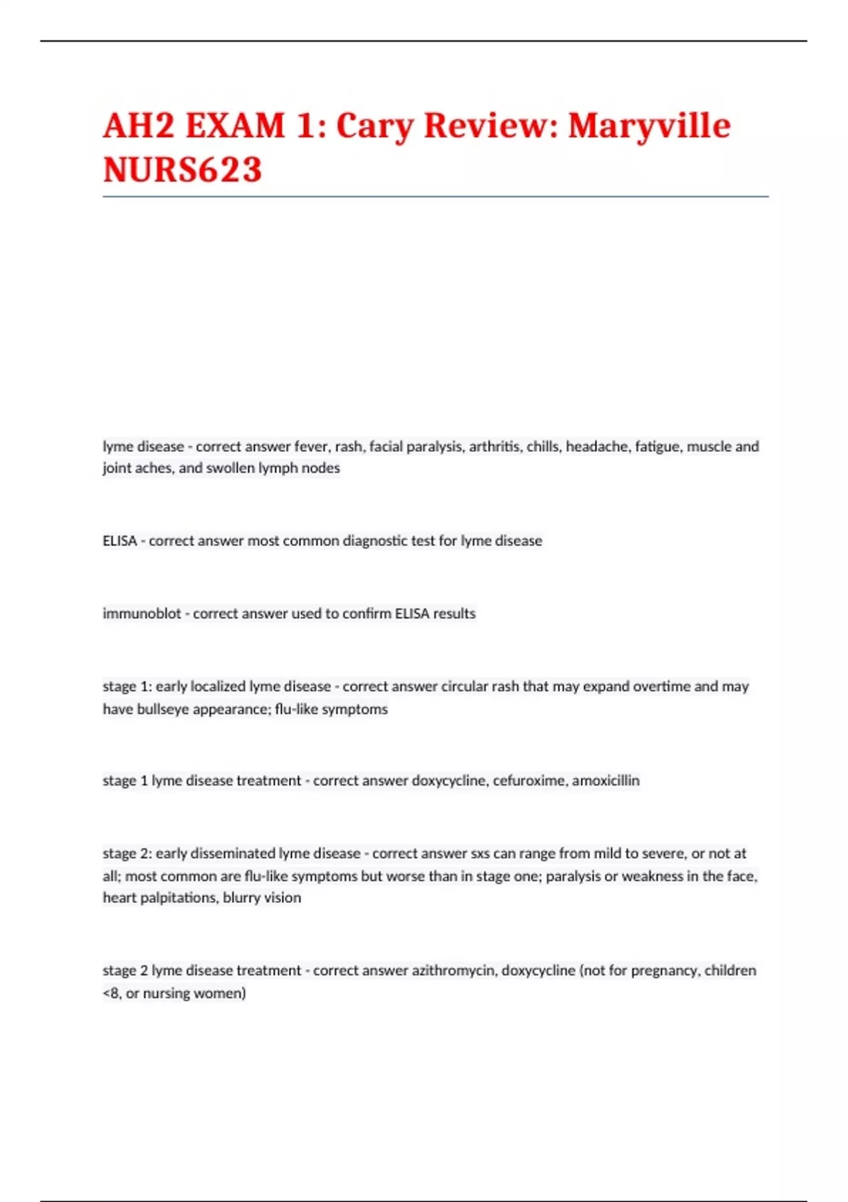 AH2 EXAM 1: Cary Review: Maryville NURS623 wit correct answers 2023-24