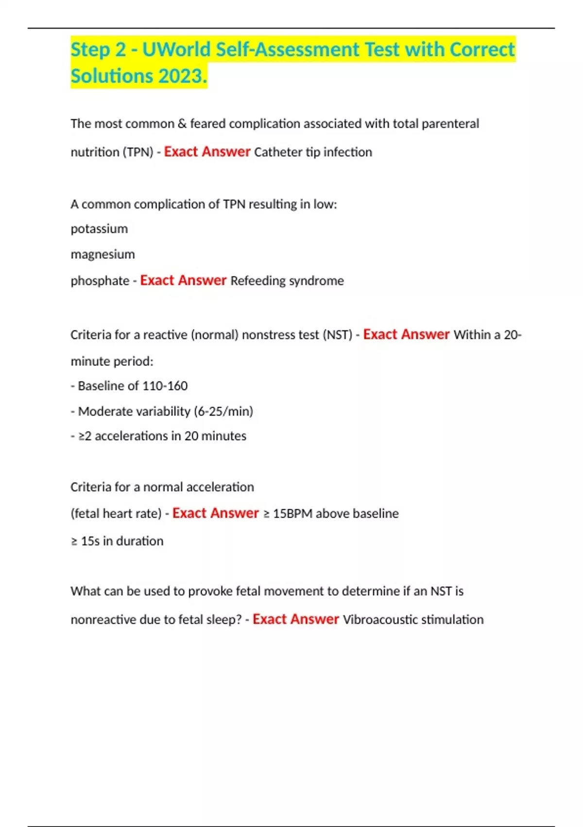 Step 2 - UWorld Self-Assessment Test with Correct Solutions 2023.