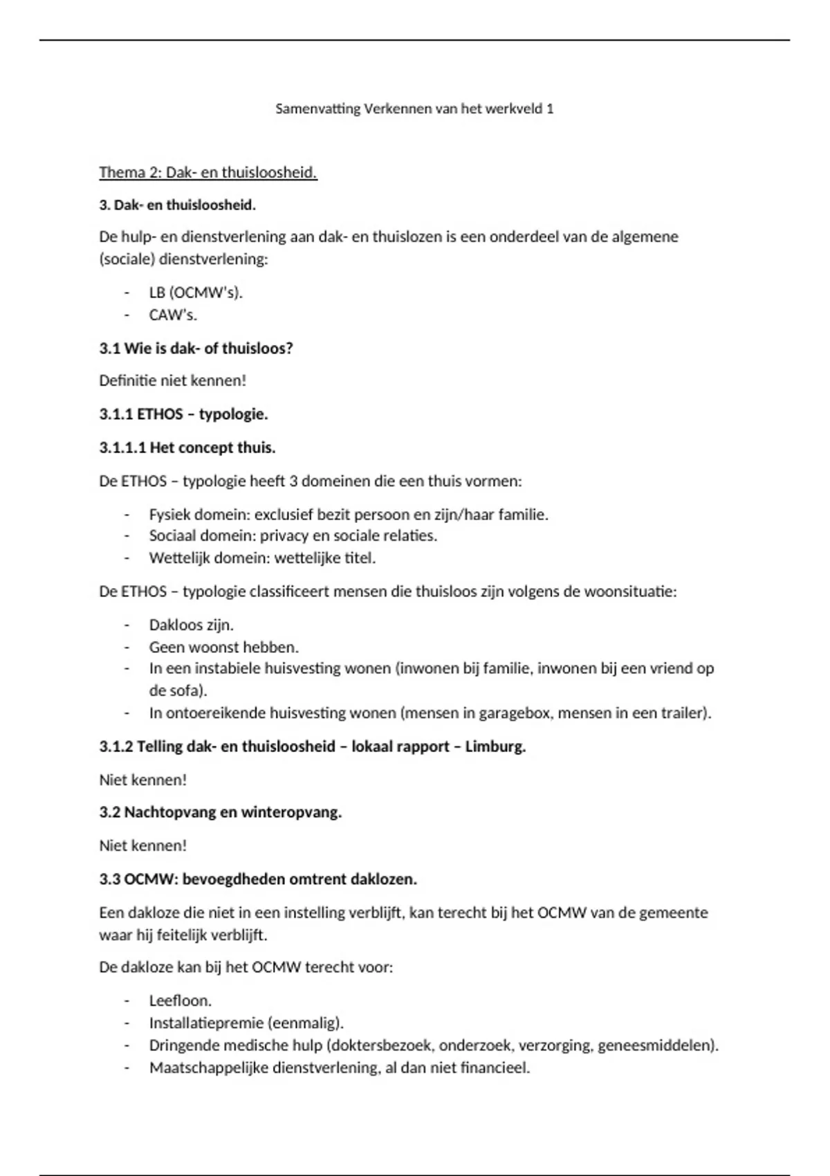 3.3 OCMW: bevoegdheden omtrent daklozen.