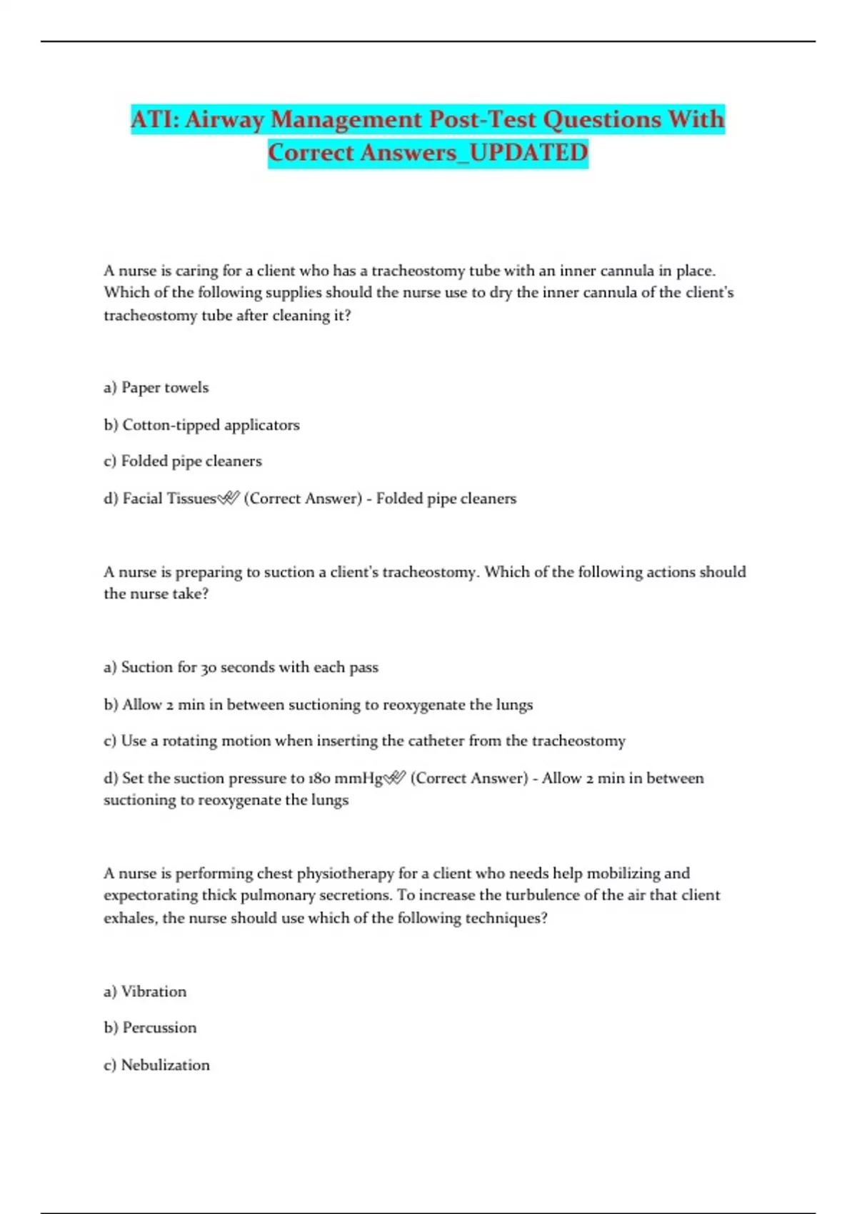 ATI: Airway Management Post-Test Questions With Correct Answers_UPDATED