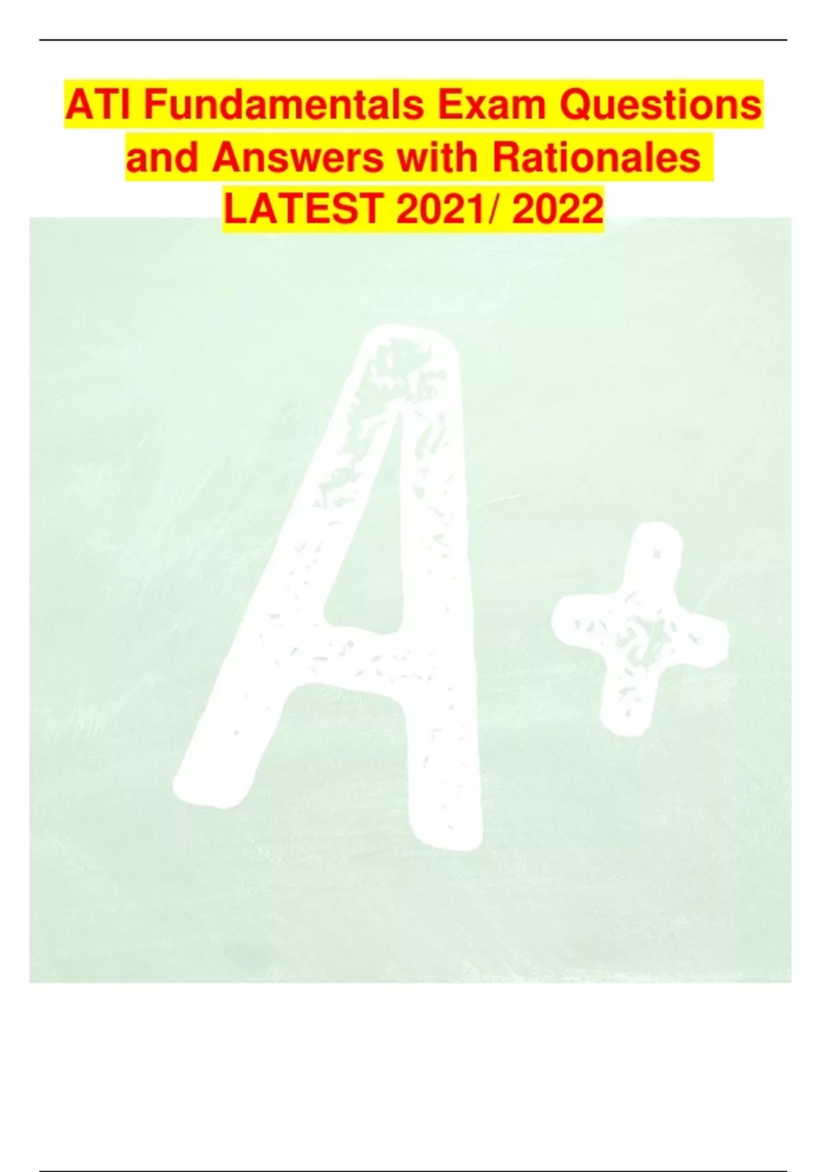 ATI Fundamentals Exam Questions and Answers with Rationales LATEST 2021/ 2022 ATI Fundamentals Exam Questionsand Answers with Rationales LATEST 2021/ 2022