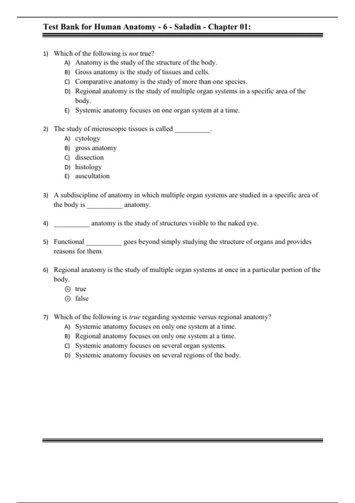 Test Bank For Human Anatomy, 6th Edition All Chapters -