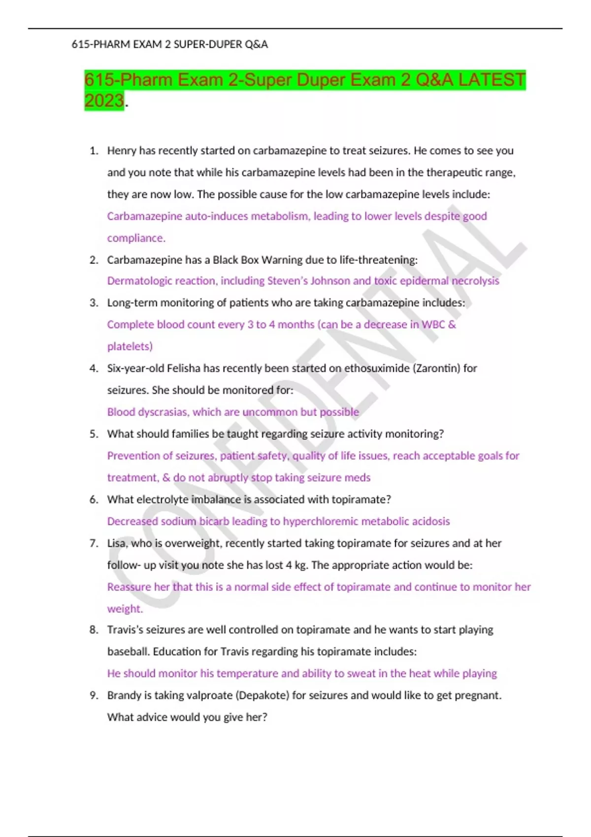 615-Pharm Exam 2-Super Duper Exam 2 Q&A LATEST 2023.615-Pharm Exam 2-Super Duper Exam 2 Q&A LATEST 2023.615-Pharm Exam 2-Super Duper Exam 2 Q&A LATEST 2023.