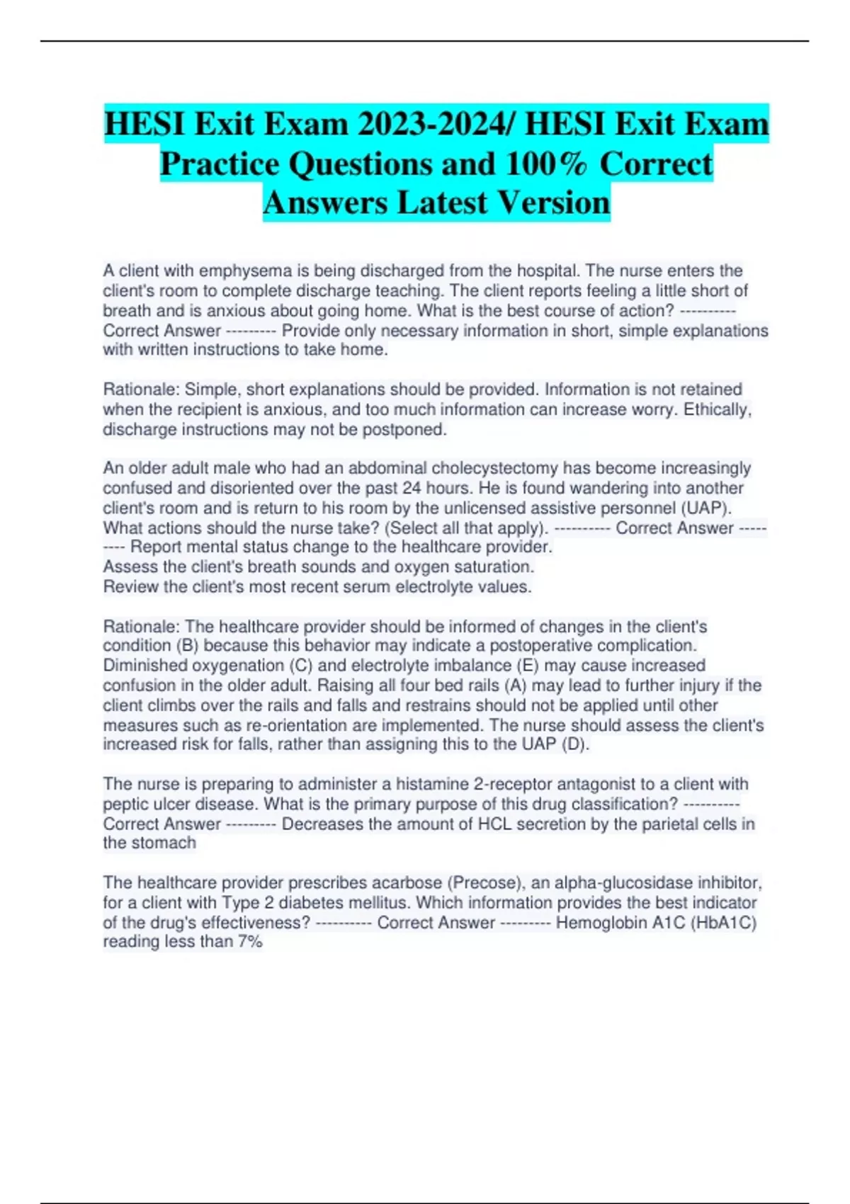 HESI Exit Exam / HESI Exit Exam Practice Questions and 100% Correct Answers Latest Version