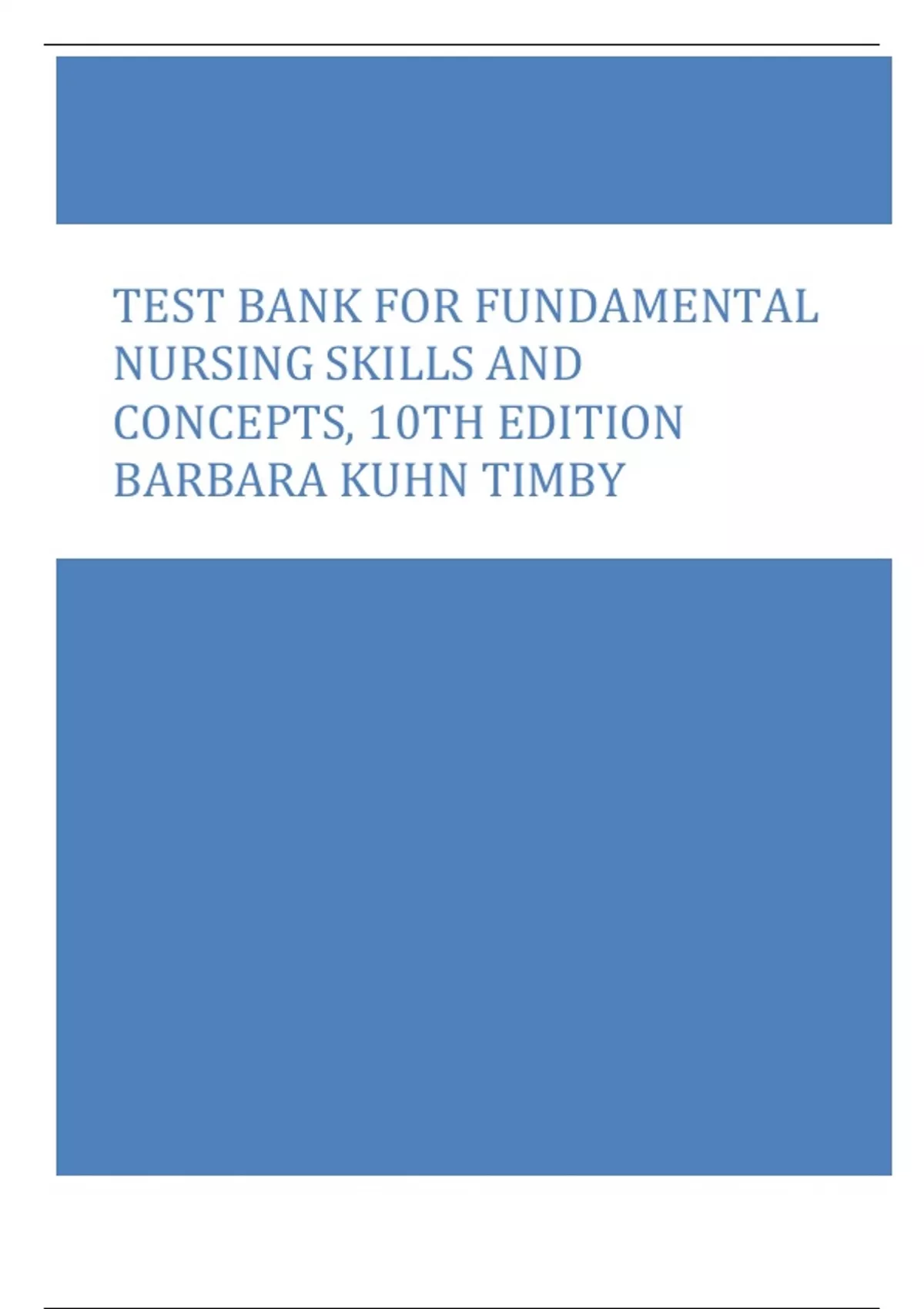 A Complete Test Bank For Fundamental Nursing Skills and Concepts, 10th Edition Barbara Kuhn Timby