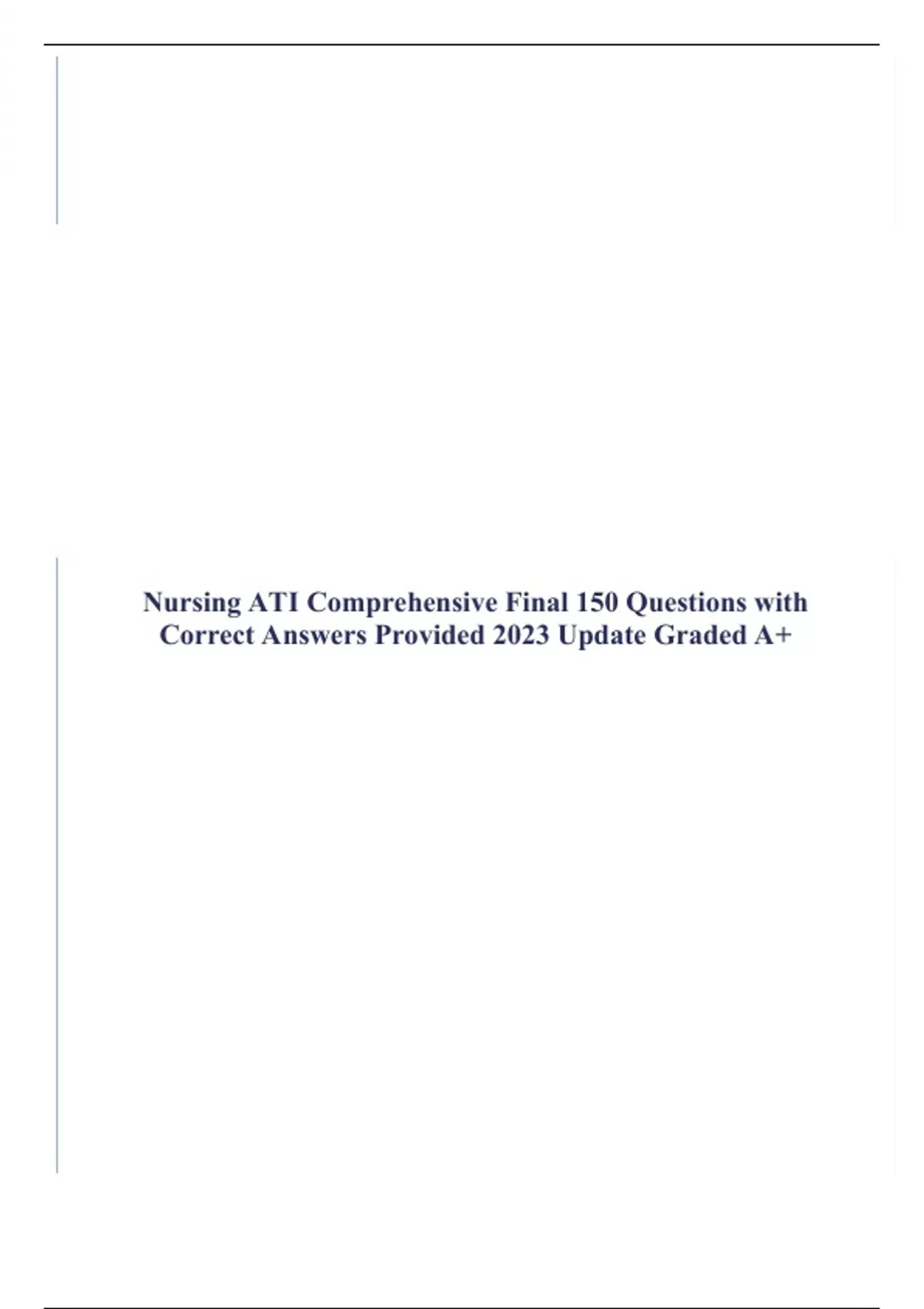 Nursing ATI Comprehensive Final 150 Questions with Correct Answers Provided 2023 Update Graded A+