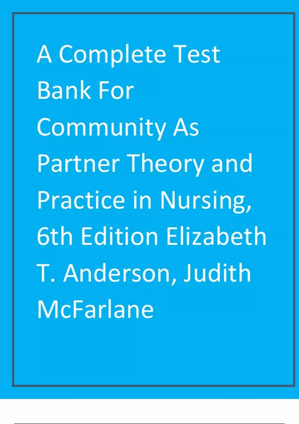 A Complete Test Bank For Community As Partner Theory and Practice in Nursing, 6th Edition Elizabeth T. Anderson, Judith McFarlane
