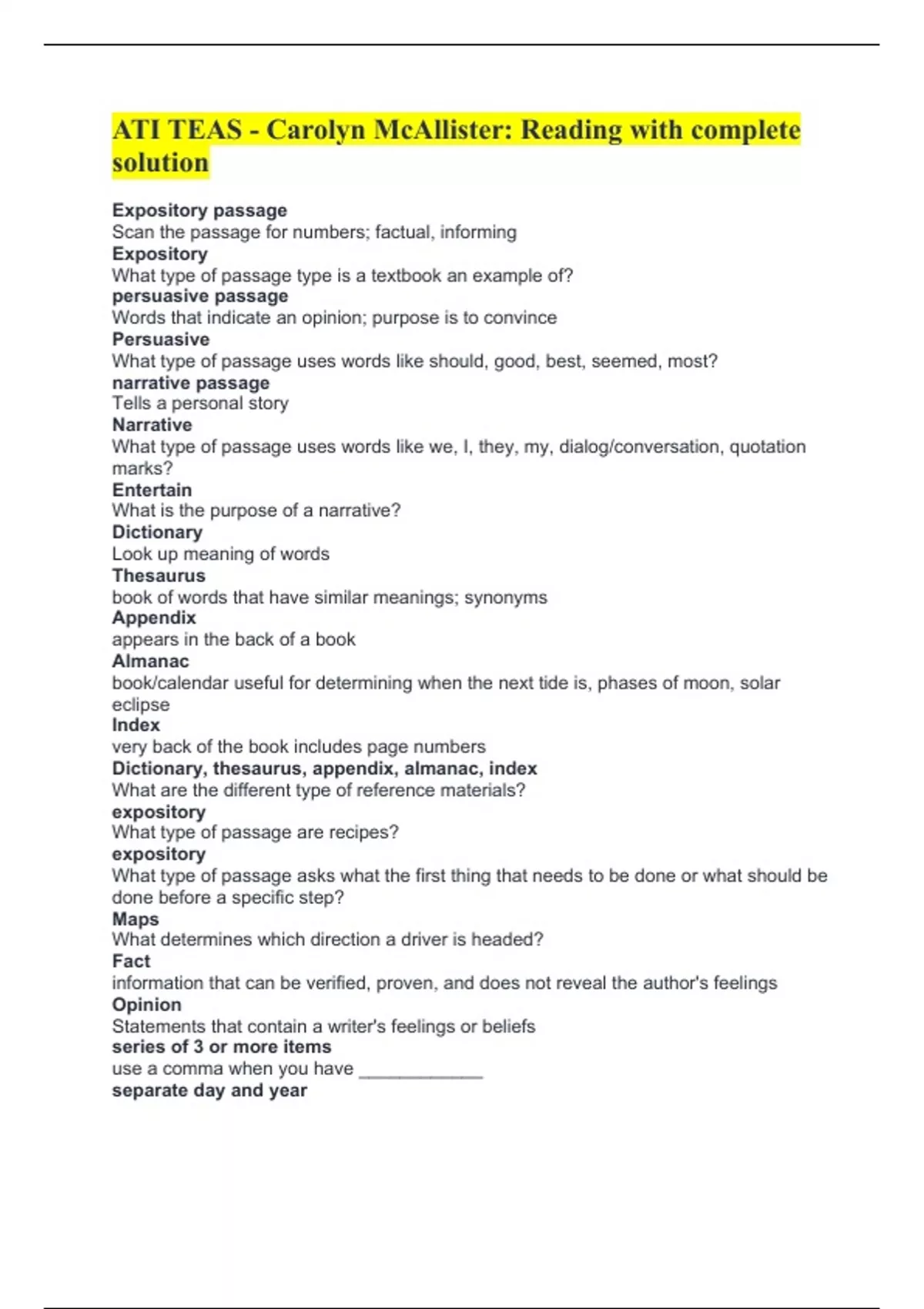 Dictionary, thesaurus, appendix, almanac, index
