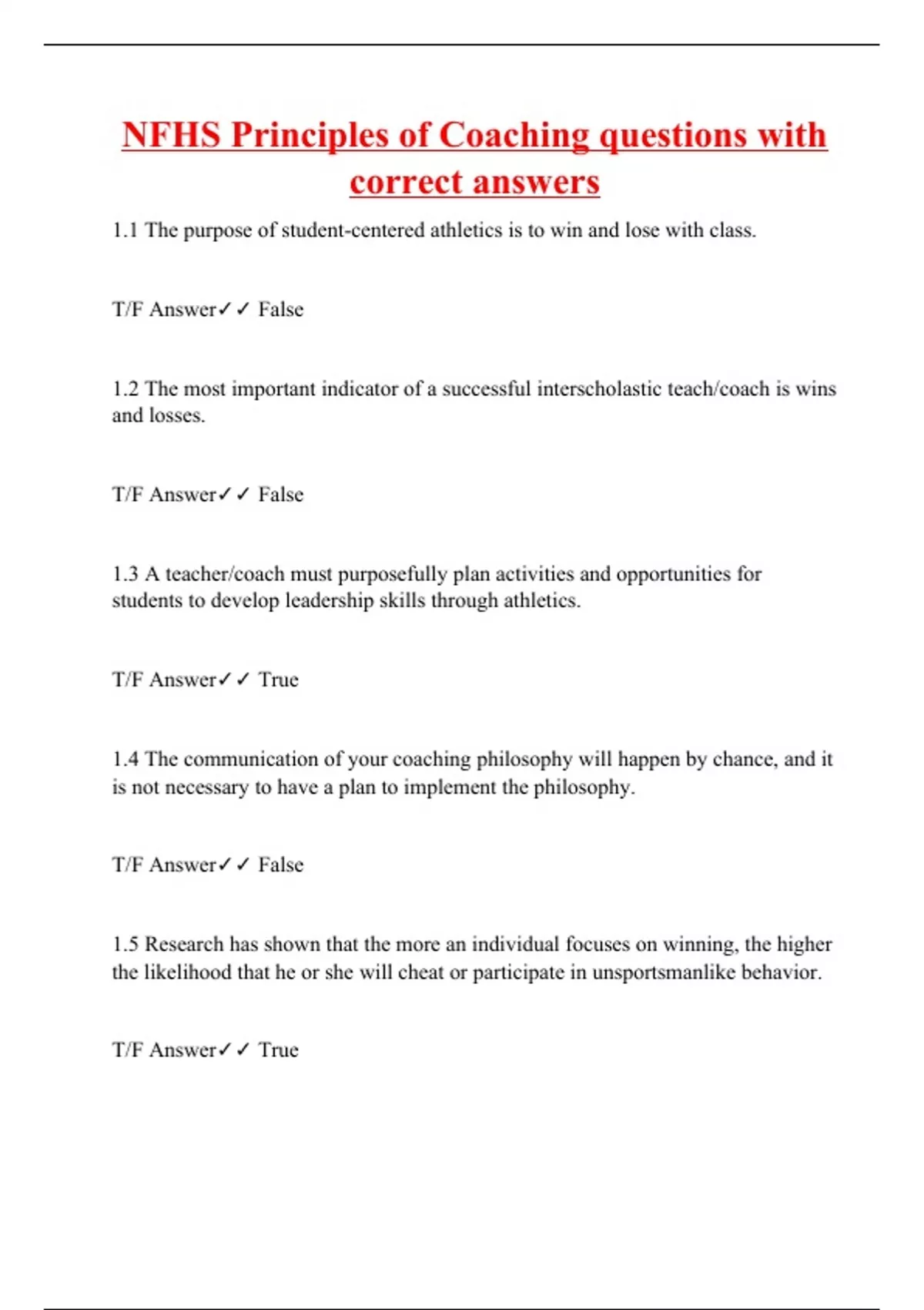 nfhs principles of coaching questions with correct