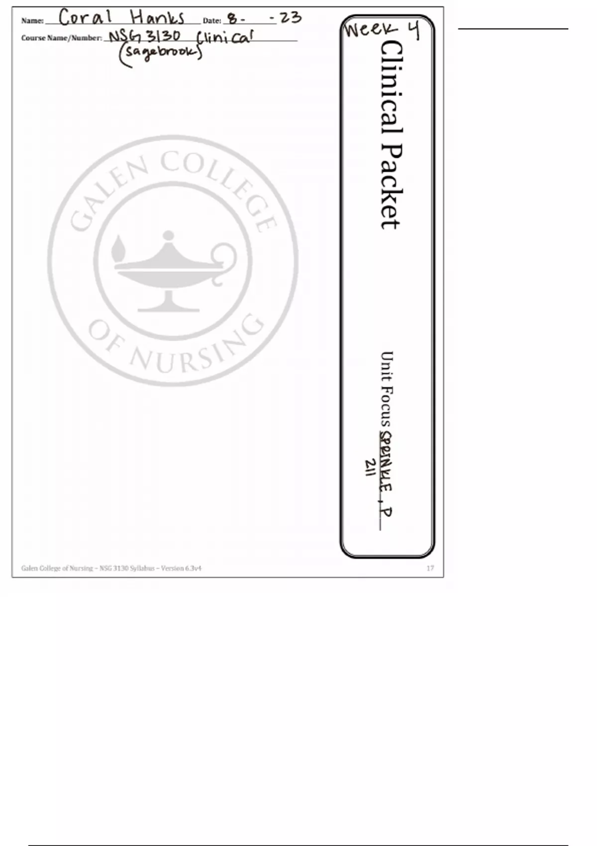 This is a filled out clinical packet from week two